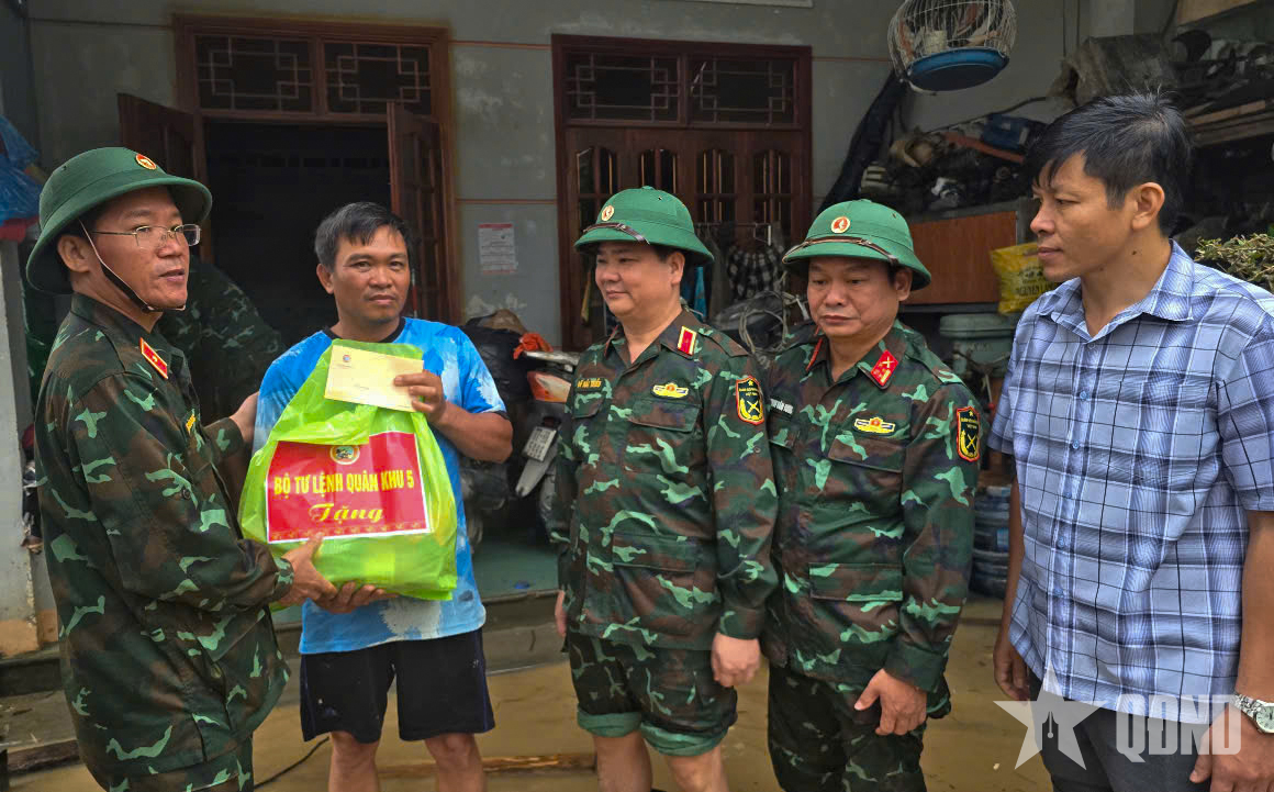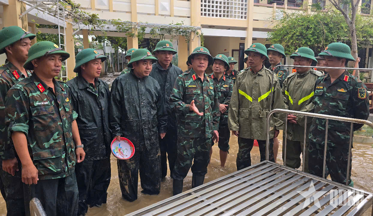 홍수로 인한 피해를 극복하고 주민들과 학교를 돕기 위해 군사지구 5부대를 방문한 Truong Thien To 중장은 부대에 사람들에 대한 책임감을 갖고, 홍수로 인한 피해를 최대한 빨리 극복하기 위해 하루나 이틀, 사흘 동안 일해 줄 것을 요청했습니다.