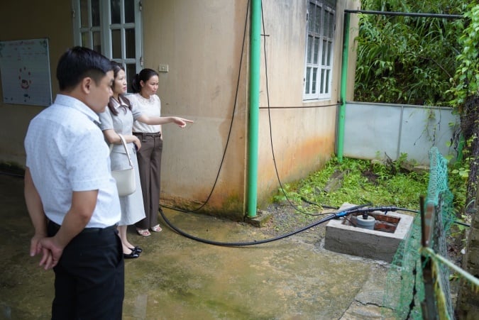 실무진은 티엔롱(Thien Long) 마을 호아빈(Hoa Binh) 유치원의 깨끗한 우물 프로젝트를 점검했습니다. 사진: 키에우 안(Kieu Anh)