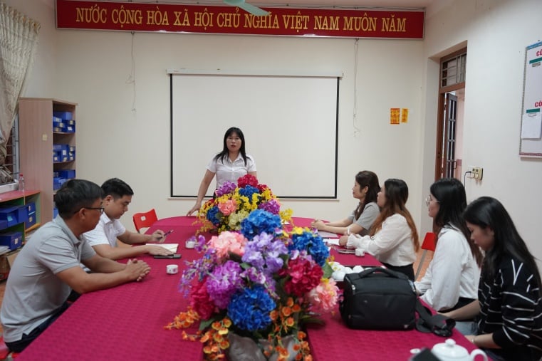 한국 DIVA 기구 실무 대표단이 티엔롱 마을 떤호아 유치원 이사회와 협력했습니다. 사진: 끼에우 안