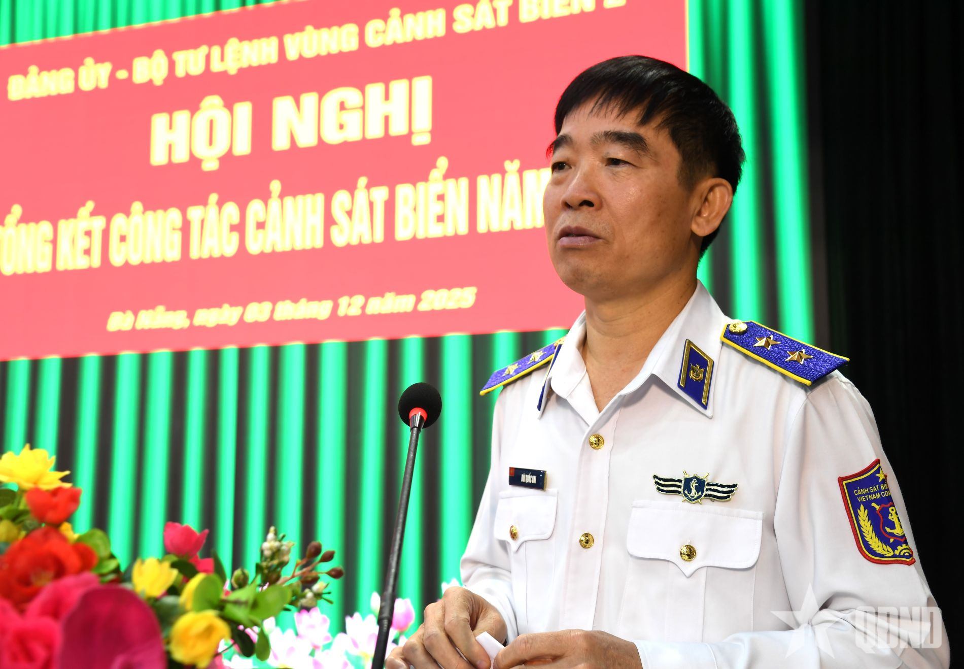 베트남 해안경비대 당 서기이자 정치위원인 부이 꾸옥 오아이 중장이 연설을 했습니다. |