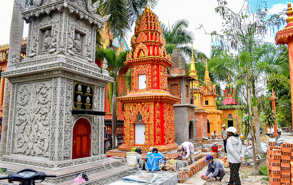 오늘날 사원 경내에는 줄지어 서 있는 탑들이 조용히 자리하고 있습니다. 고인의 기억을 간직하는 장소일 뿐만 아니라, 부부 사이의 충실하고 변함없는 사랑과 자녀와 손주들의 효도를 생생하게 보여주는 곳이기도 합니다. 이는 남부 크메르 공동체의 고유한 정체성을 형성하는 독특한 문화적 특징입니다.