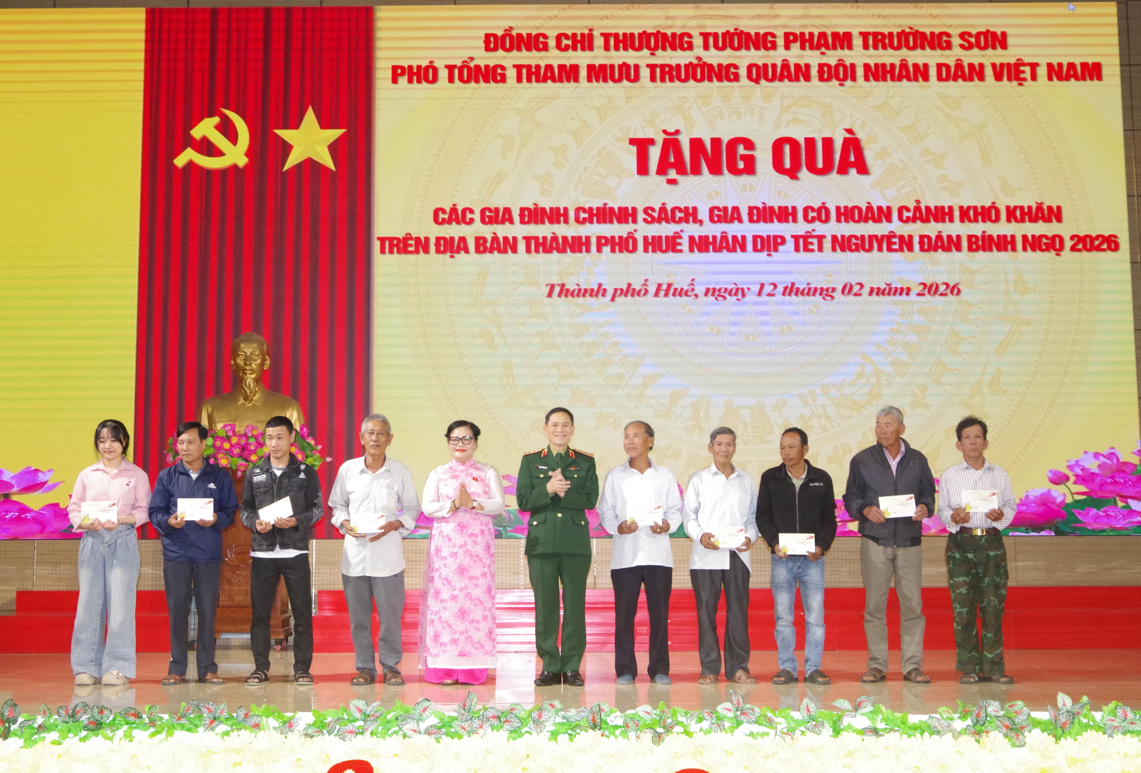 Dịp này, Thượng tướng Phạm Trường Sơn và Tập đoàn Viễn thông Quân đội, lãnh đạo Quân khu, Bộ CHQS thành phố đã trao tặng 130 suất quà mỗi suất trị giá 1 triệu đồng cho các gia đình chính sách, gia đình có hoàn cảnh khó khăn trên địa bàn thành phố Huế.