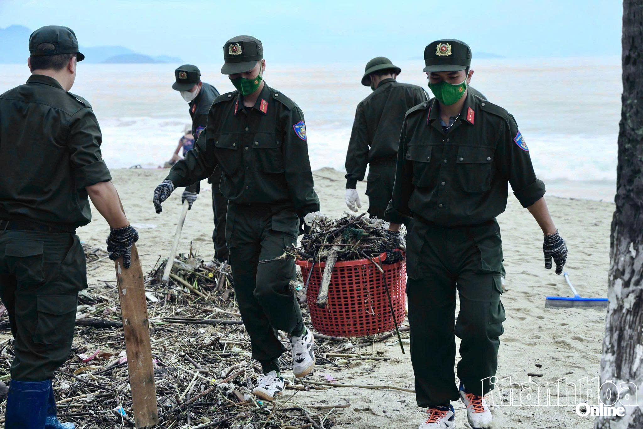 ຂ້າງລຸ່ມນີ້ແມ່ນຮູບພາບຂອງກຳລັງຕຳຫຼວດເຄື່ອນທີ່ຂອງຕຳຫຼວດແຂວງ ແຄ໋ງຮ່ວາ ແລະ ຕຳຫຼວດນະຄອນ ໂຮ່ຈີມິນ ກຳລັງທຳຄວາມສະອາດຫາດຊາຍ: