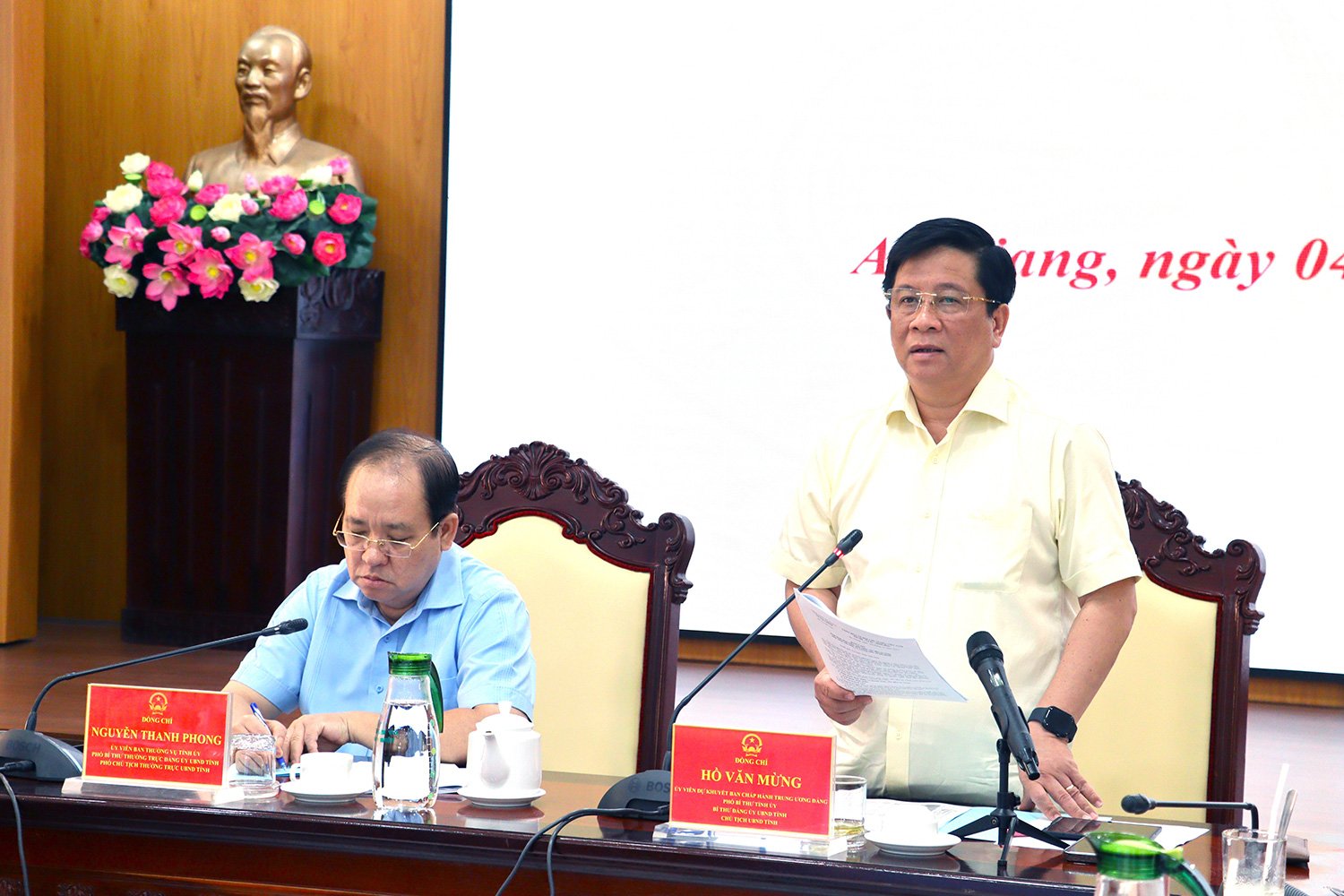 ທ່ານປະທານຄະນະກຳມະການປະຊາຊົນແຂວງ ອານຢາງ Ho Van Mung ກ່າວຄຳເຫັນທີ່ກອງປະຊຸມ.