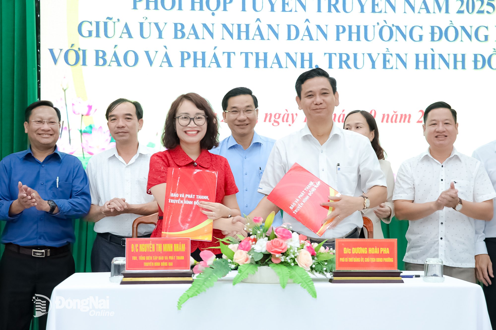 ເຂົ້າຮ່ວມພິທີລົງນາມມີຄະນະປະຈຳພັກແຂວງ, ຫົວໜ້າບັນນາທິການໃຫຍ່ໜັງສືພິມ ດົ່ງນາຍ , ວິທະຍຸກະຈາຍສຽງ ແລະ ໂທລະພາບ ຫງວຽນທິມິງນາມ ແລະ ການນຳບັນດາຄະນະວິຊາສະເພາະ. ການນຳຂອງເຂດ ດົງຊວນ ມີ: ຮອງເລຂາຄະນະພັກເຂດຕາແສງ Cao Van Vu; ທ່ານຮອງເລຂາຄະນະພັກ, ປະທານຄະນະກຳມະການປະຊາຊົນຕາແສງ ດົ່ງຫາຍຟ່າ.