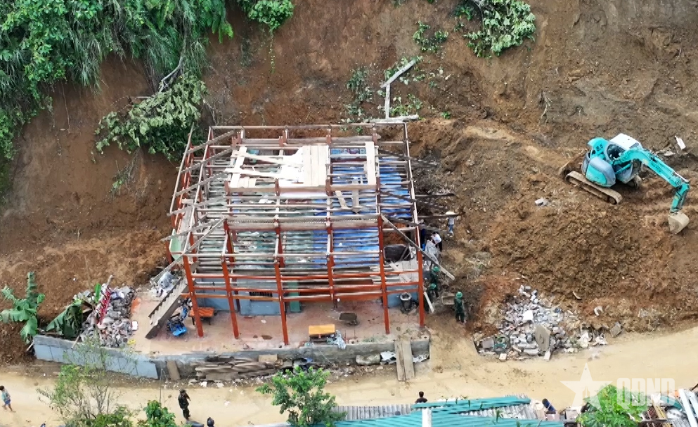 ທະຫານຊ່ວຍປະຊາຊົນຮື້ຖອນເຮືອນຊານທີ່ໄດ້ຮັບຄວາມເສຍຫາຍຈາກດິນເຈື່ອນຢູ່ບ້ານນ້ຳໄຊ, ເມືອງກາວມິນ, ແຂວງ ໄທງວຽນ . |
