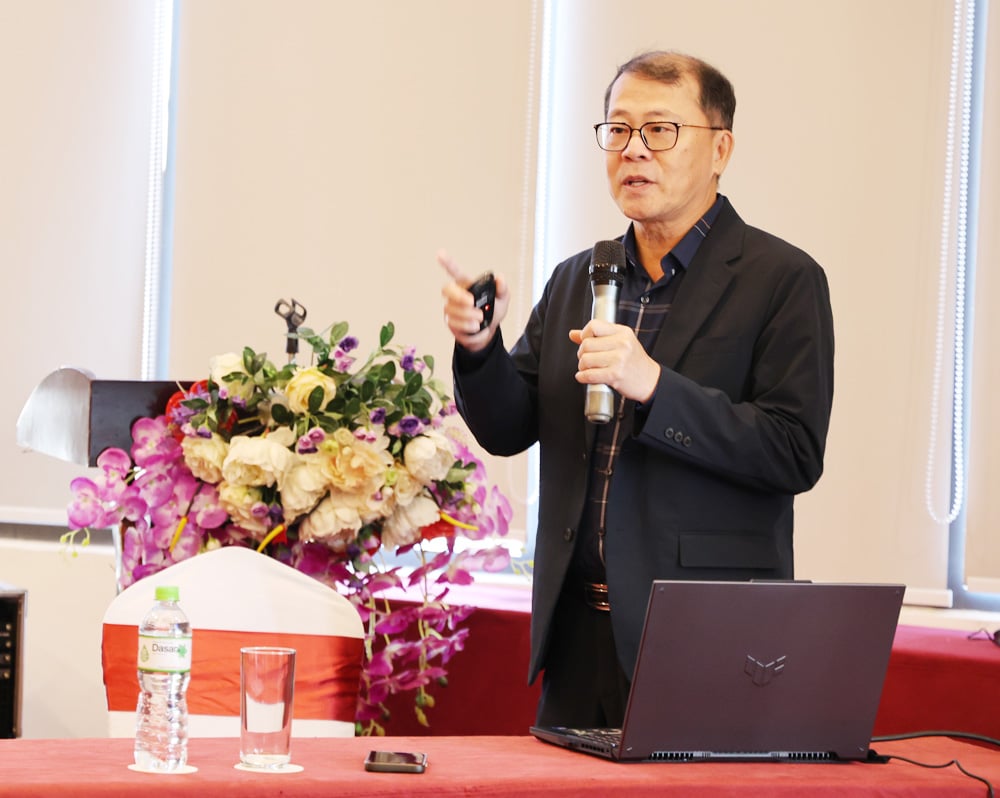 ນັກຂ່າວ ຫງວຽນຮ່ານາມ, ອະດີດຫົວໜ້າບັນນາທິການບັນນາທິການ, ໂທລະພາບຫວຽດນາມ ໄດ້ສອນຢູ່ຫ້ອງຝຶກອົບຮົມ. |