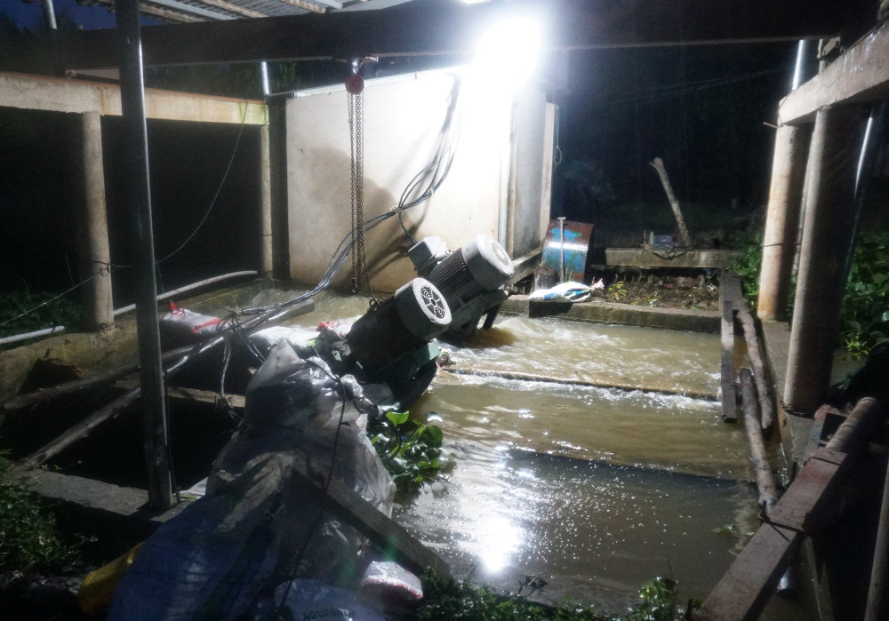 ສະຖານີສູບໄຟຟ້າຫຼາຍແຫ່ງຕ້ອງປະຕິບັດງານທັງກາງເວັນແລະກາງຄືນເພື່ອສູບນ້ຳທີ່ຮົ່ວໄຫຼຈາກພາຍນອກເຂົ້າສູ່ເຂດເຂື່ອນ.