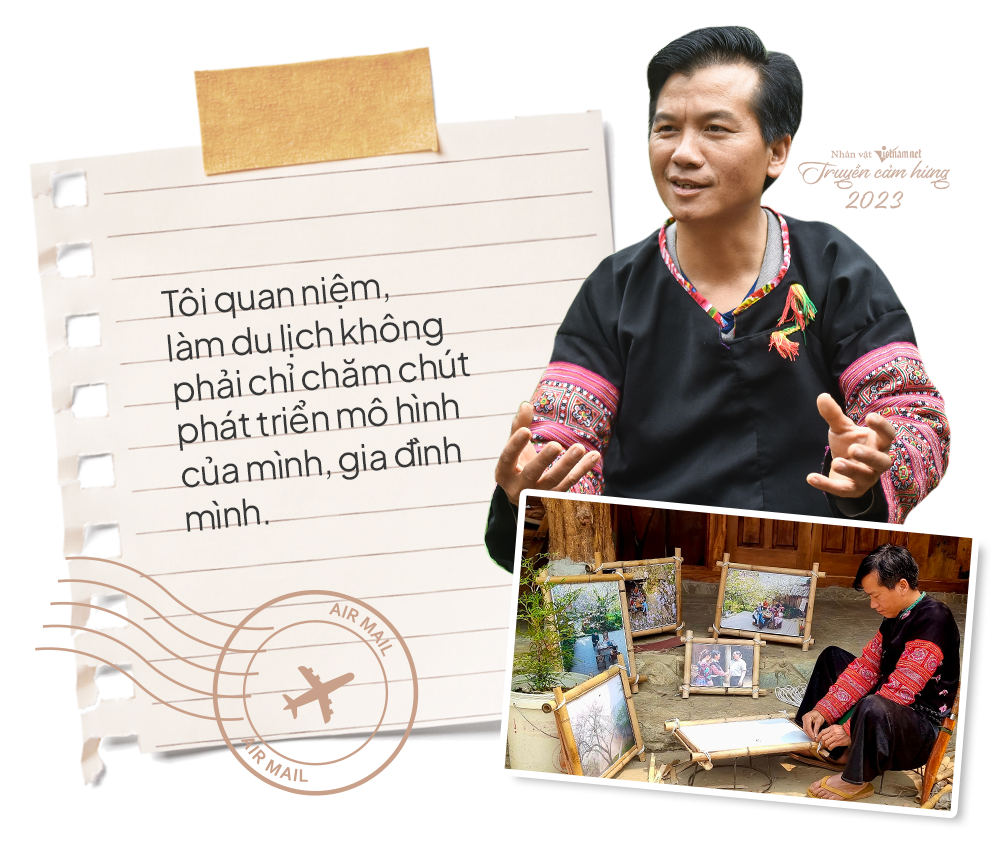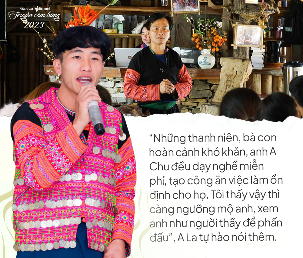 ຍ້ອນການຊີ້ນຳທີ່ສຸດຂອງ “ອາຈານ” ຈ່າງແອຈູ, ປະຈຸບັນ A La ພວມດຳລົງຕຳແໜ່ງເປັນຜູ້ອຳນວຍການສະຫະກອນບໍລິການກະສິກຳ ແລະ ທ່ອງທ່ຽວ Hang Kia. A La ມີ 4 ເຮືອນເສົາທີ່ເປັນເອກະລັກສະເພາະ, ເຊື່ອມໂຍງກັບສະຖາປັດຕະຍະກຳພື້ນເມືອງຂອງຊາວເຜົ່າມົ້ງ ແລະ ໄທ. ບໍ່ພຽງແຕ່ຢຸດຕິການບໍລິການບ້ານເຮືອນພັກເທົ່ານັ້ນ, Giang A La ຍັງດຶງດູດແຂກທີ່ມີປະສົບການດ້ານກະສິກຳ ແລະ ເຂົ້າຮ່ວມບັນດາກິດຈະກຳວັດທະນະທຳທີ່ເປັນເອກະລັກສະເພາະຄື: ການທາສີຂີ້ເຜິ້ງ, ການຍ້ອມສີຄຳ, ການເຮັດເຈ້ຍ... “ຂ້າພະເຈົ້າບໍ່ກ້າອ້າງເອົາວ່າເປັນຄູສອນຂອງເຂົາເຈົ້າ, ຂ້າພະເຈົ້າເປັນພຽງຜູ້ບຸກເບີກ, ແບ່ງປັນປະສົບການ ແລະ ໄປຄຽງຄູ່ກັບການເຄື່ອນໄຫວທ່ອງທ່ຽວຂອງຊຸມຊົນ, ອະນຸລັກຮັກສາວັດທະນະທຳຂອງຊາດ. [caption id="attachment_564411" align="aligncenter" width="1024"]