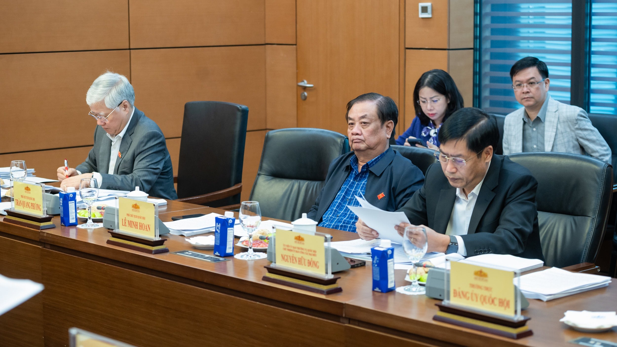 ເຂົ້າຮ່ວມມີ: ກຳມະການ ກົມການເມືອງ , ຮອງເລຂາຄະນະພັກສະພາແຫ່ງຊາດ, ຮອງປະທານສະພາແຫ່ງຊາດ ໂດວັນຈຽນ; ແລະ ສະມາຊິກຄະນະກຳມະການສູນກາງ ແລະ ສະມາຊິກຄະນະປະຈຳຂອງຄະນະກຳມະການພັກສະພາແຫ່ງຊາດຄື: ຮອງປະທານສະພາແຫ່ງຊາດ ຫງວຽນຄັກດິ້ງ; ຮອງປະທານສະພາແຫ່ງຊາດ ຫງວຽນດຶກຫາຍ; ຮອງປະທານສະພາແຫ່ງຊາດ ຫງວຽນທິແທ່ງ; ຮອງປະທານສະພາແຫ່ງຊາດ ເລມິງຮວ່ານ; ເລຂາທິການໃຫຍ່ສະພາແຫ່ງຊາດ, ຫົວໜ້າຫ້ອງວ່າການສະພາແຫ່ງຊາດ ເລກວາງແງ; ແລະ ປະທານຄະນະກຳມະການກ່ຽວກັບວຽກງານຜູ້ແທນ ຫງວຽນຫືວດົງ.
