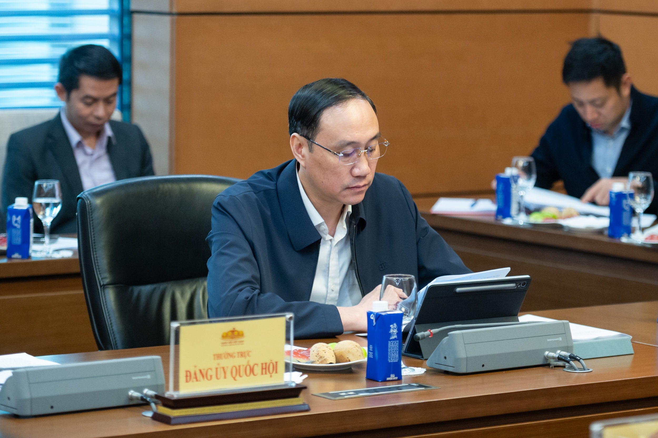 ທີ່ກອງປະຊຸມ, ທ່ານປະທານ ສະພາແຫ່ງຊາດ ເຈິ່ນແທງເມັງ, ທ່ານຮອງປະທານສະພາປະຈຳ ໂດວັນຈຽນ ແລະ ຮອງປະທານທ່ານອື່ນໆ ໄດ້ສຸມໃສ່ການປະເມີນຜົນການປະຕິບັດໜ້າທີ່ຂອງສະພາແຫ່ງຊາດໃນປີ 2025.
