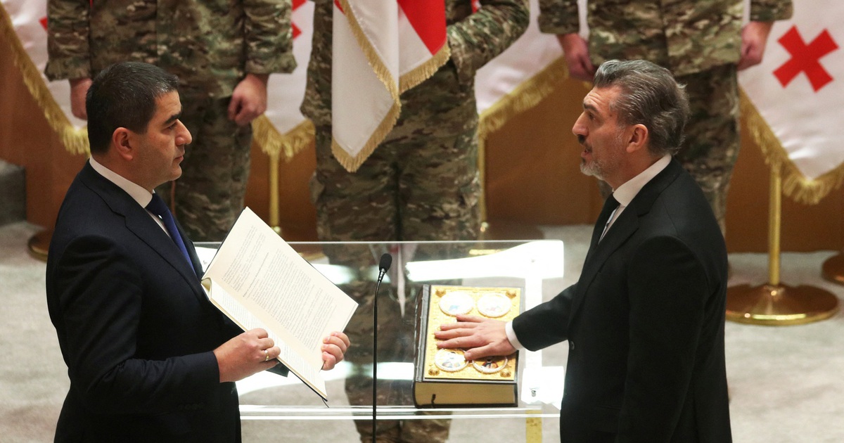 ທ່ານ Kavelashvili (ຂວາ) ໄດ້ສາບານຕົວຂຶ້ນຮັບຕຳແໜ່ງປະທານາທິບໍດີຈໍເຈຍ ທີ່ສຳນັກງານໃຫຍ່ລັດຖະສະພາໃນວັນທີ 29 ທັນວານີ້.