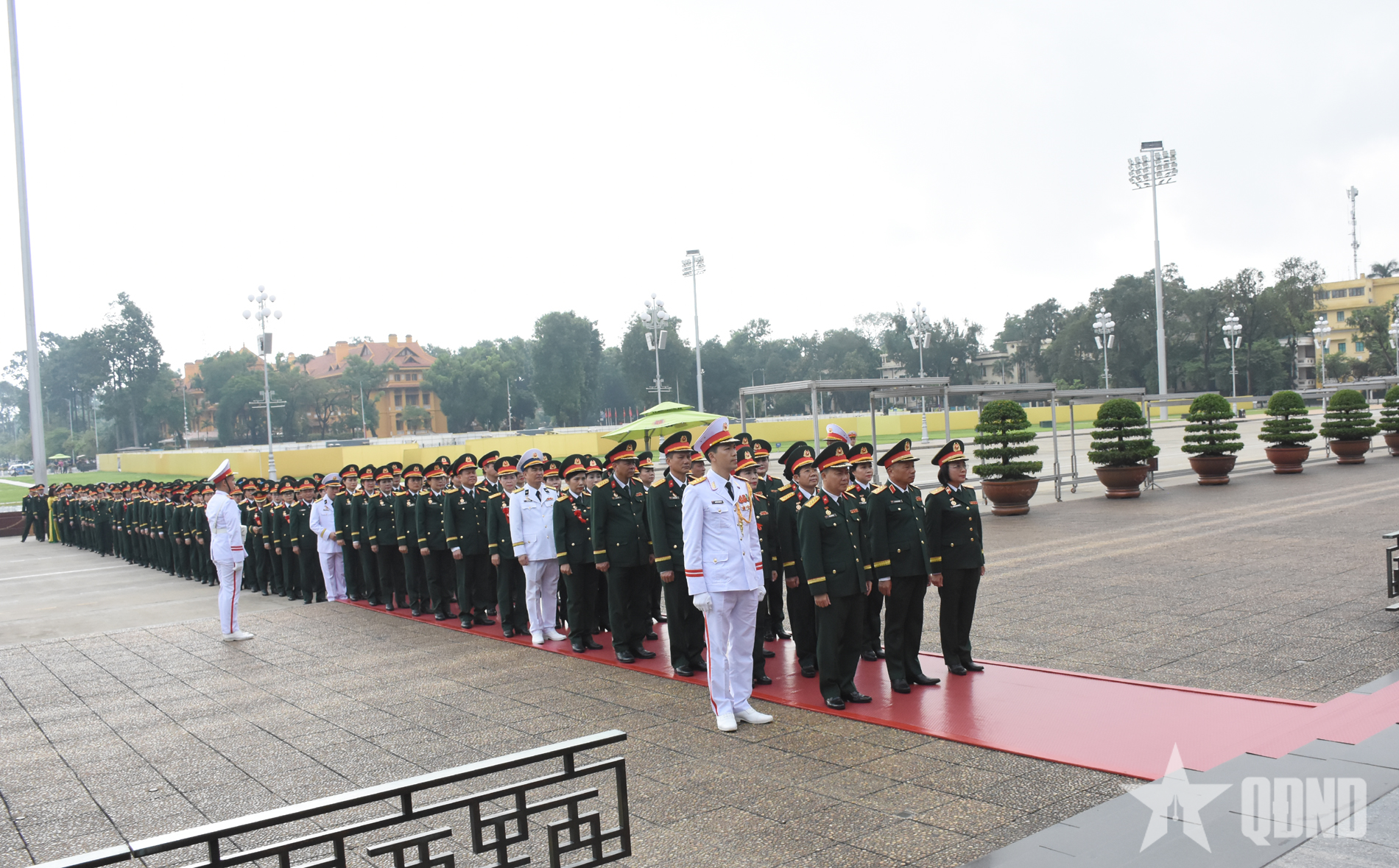 ພ້ອມທັງເຂົ້າຮ່ວມໃນຄະນະມີຜູ້ຕາງໜ້າຂອງກົມໃຫຍ່ ການເມືອງ ; ກອງບັນຊາການສຸສານ ໂຮ່ຈີມິນ; ແລະ ຜູ້ຕາງໜ້າບັນດາອົງການບັນຊາການການເມືອງຂອງບັນດາຫົວໜ່ວຍທົ່ວກອງທັບ.
