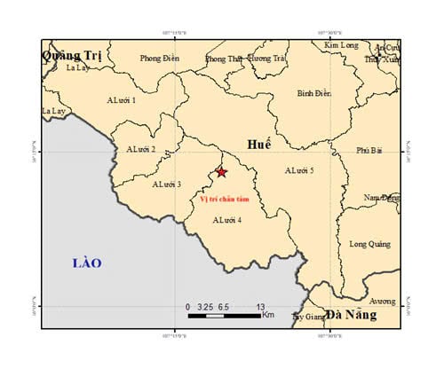 | ແຜ່ນດິນໄຫວໄດ້ເກີດຂຶ້ນຢູ່ບ້ານ A Luoi 4. ພາບ: ກອງບັນຊາການປ້ອງກັນເຄື່ອນທີ່ເມືອງ ເຫ້ວ |