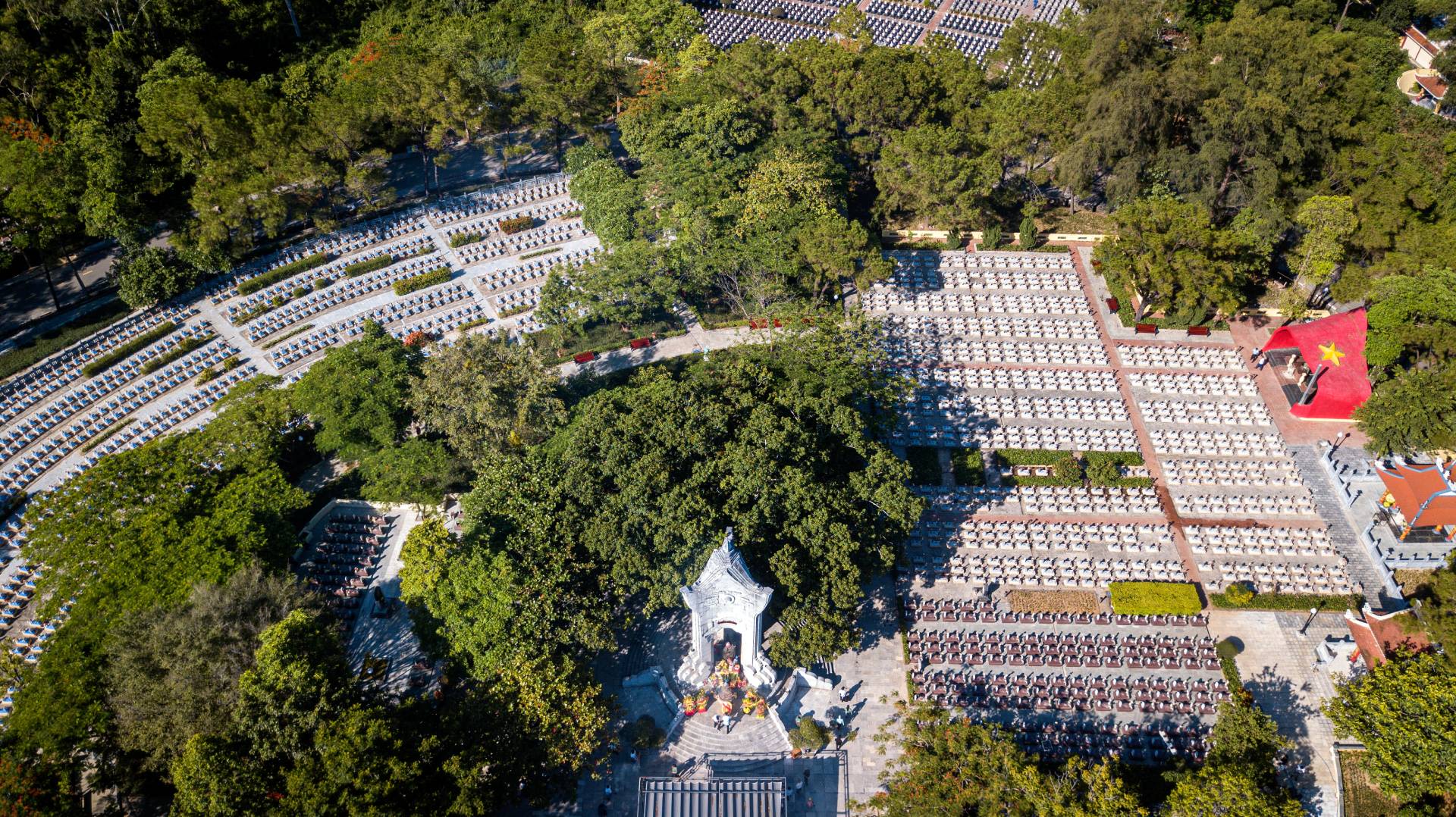ສຸສານຕັ້ງຢູ່ເທິງເນີນພູໃຫຍ່, ປະສົມປະສານກັບທິວທັດທໍາມະຊາດທີ່ສະຫງົບສຸກ. ເຂດໃຈກາງແມ່ນອະນຸສອນສະຖານທີ່ມີຮູບປັ້ນປະທານ ໂຮ່ຈີມິນ ແລະ ບັນດານັກຮົບວິລະຊົນ, ອ້ອມຮອບດ້ວຍຂຸມຝັງສົບທີ່ໄດ້ວາງແຜນໄວ້ຢ່າງເປັນລະບຽບ, ແຕ່ລະບ່ອນມີຮູບປັ້ນບັນທຶກຊື່ຜູ້ເສຍສະຫຼະຊີວິດເພື່ອຊາດ. ນອກນັ້ນ, ຍັງມີວຽກງານເສີມສ້າງເຊັ່ນເຮືອນພື້ນເມືອງ, ເຮືອນແກ້ວອະນຸສອນສະຖານ ແລະ ເຂດສີຂຽວທີ່ນຳມາເຊິ່ງຄວາມສະຫງ່າງາມ ແລະ ຄວາມສະຫງົບສຸກໃຫ້ແກ່ແຂກທ່ອງທ່ຽວ.