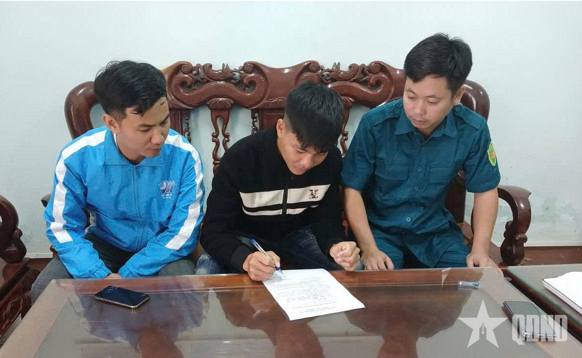 | ຜູ້ຕາງໜ້າການນຳ ແລະກອງບັນຊາການທະຫານເຂດ ເຈີ່ນຟຸກ (ຮ່າຕິ້ງ) ຊຸກຍູ້ ແລະ ເຂົ້າໃຈຄວາມມຸ່ງມາດປາດຖະໜາຂອງໄວໜຸ່ມ ຫງວຽນທຽນດຶກ ເກີດປີ 2004, ພໍ່ແມ່ປະຊາຊົນຢູ່ເຂດບ້ານ Thuong Dinh ປະຕິບັດກົດໝາຍວ່າດ້ວຍການບໍລິການການທະຫານ. |