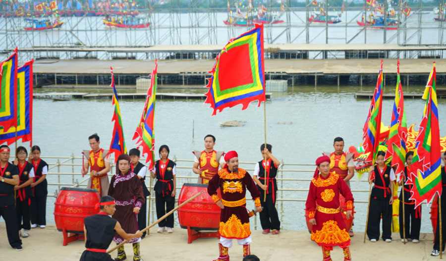 ເຖິງວ່າຈະຈັດຂຶ້ນຊ້າກວ່າທຸກໆປີກໍ່ຕາມ, ແຕ່ Festival ແມ່ນ້ຳ Luc Dau ໃນປີນີ້ຍັງຄົງຄຶກຄື້ນ. ນີ້ແມ່ນລະດູການບຸນທຳອິດທີ່ຈັດຂຶ້ນພາຍຫຼັງການສົມທົບຂອງແຂວງ ຫາຍເຢືອງ ແລະ ນະຄອນ ຫາຍຟ່ອງ. ຍ່າງໄປຕາມແຄມແມ່ນ້ຳ Luc Dau, ເຫັນທຸງ 5 ສີ ລອຍຂຶ້ນເທິງທ້ອງຟ້າ ຫລັງຈາກມີແສງແດດຫຼາຍມື້ຫຼັງຈາກຝົນຕົກດົນ, ຂ້ອຍໄດ້ຍິນສຽງກອງງານບຸນດັງຂຶ້ນຈາກທຸກທິດ. ຢືນຢູ່ແຄມຝັ່ງ, ຫລຽວເບິ່ງແມ່ນ້ຳ, ການຕີກອງແຕ່ລະເທື່ອກໍຄືກັບເຫັນເຮືອໂບຮານນັບສິບລຳຍູ້ໂຟມຂຶ້ນສູ່ໜ້ານ້ຳ, ສຽງຂອງທະຫານຮ້ອງຂຶ້ນເຮັດໃຫ້ເຮືອເປັນກ້ອນຫີນ. ສຽງປະກາດຂອງຮົ່ງດ່າວວູງໄດ້ຍິນຢູ່ທຸກມຸມຂອງວັດ, ສຽງດັງຈາກແມ່ນ້ຳລົງສູ່ໜ້ານ້ຳ, ເຮັດໃຫ້ວັດທັງກົກບັກຕື່ນຕົວໃນບັນຍາກາດຂອງວັນບຸນການທະຫານ.