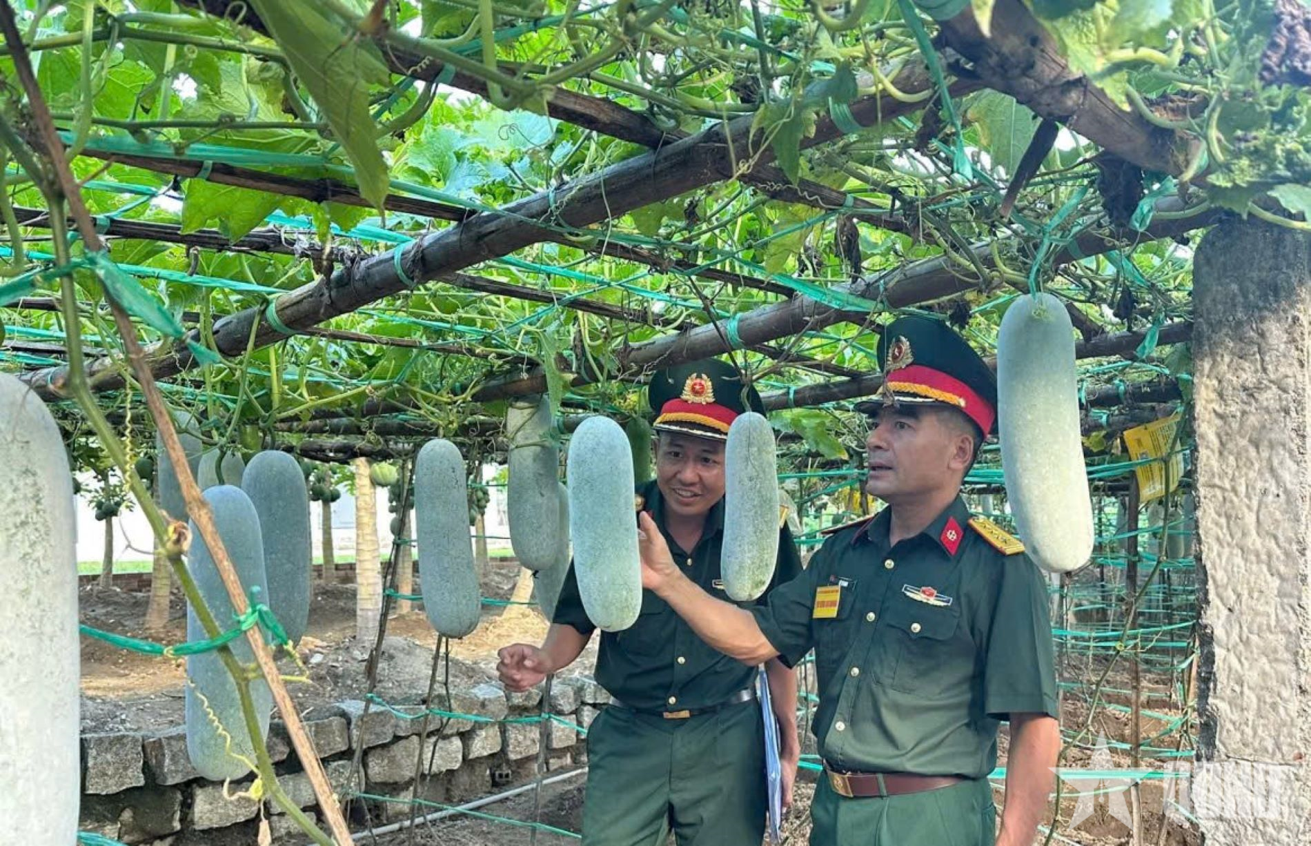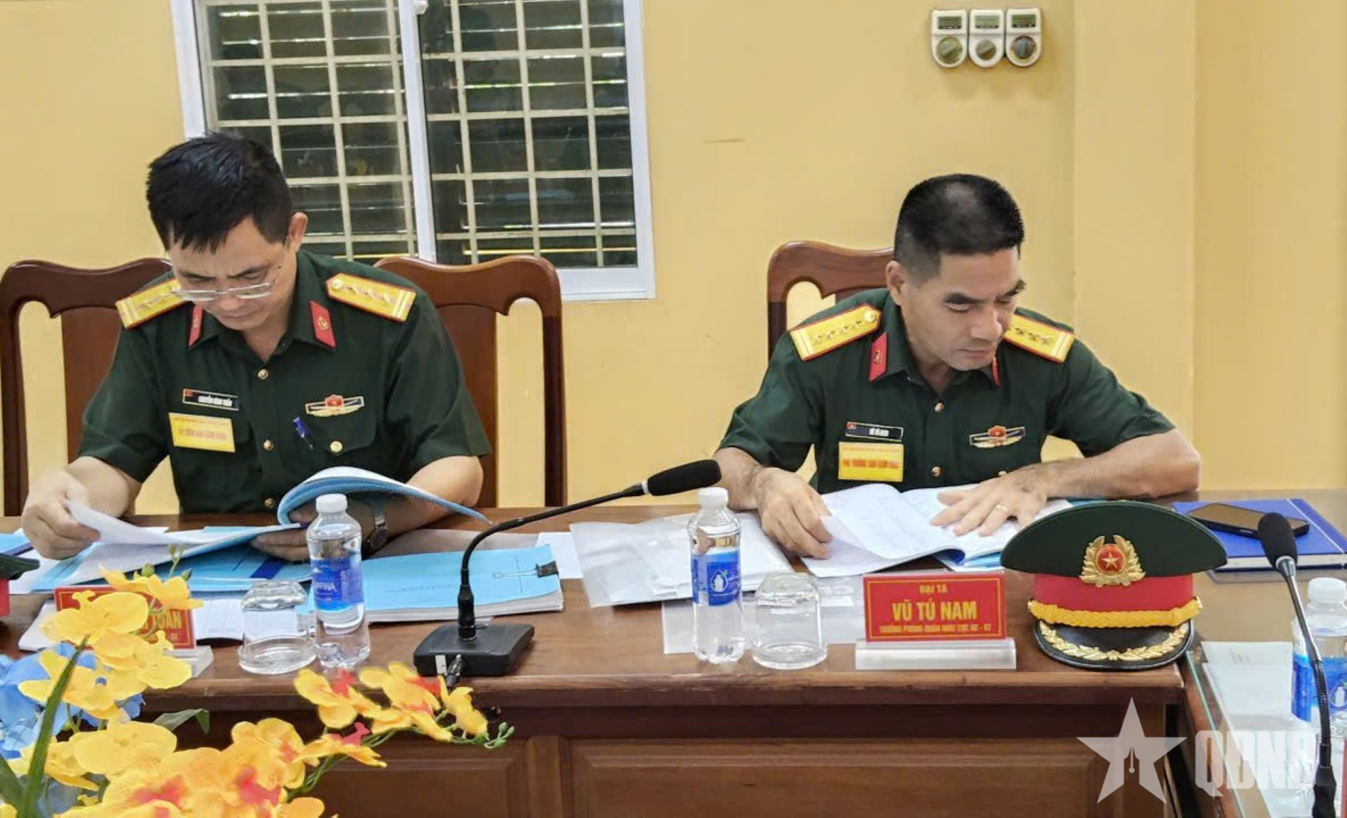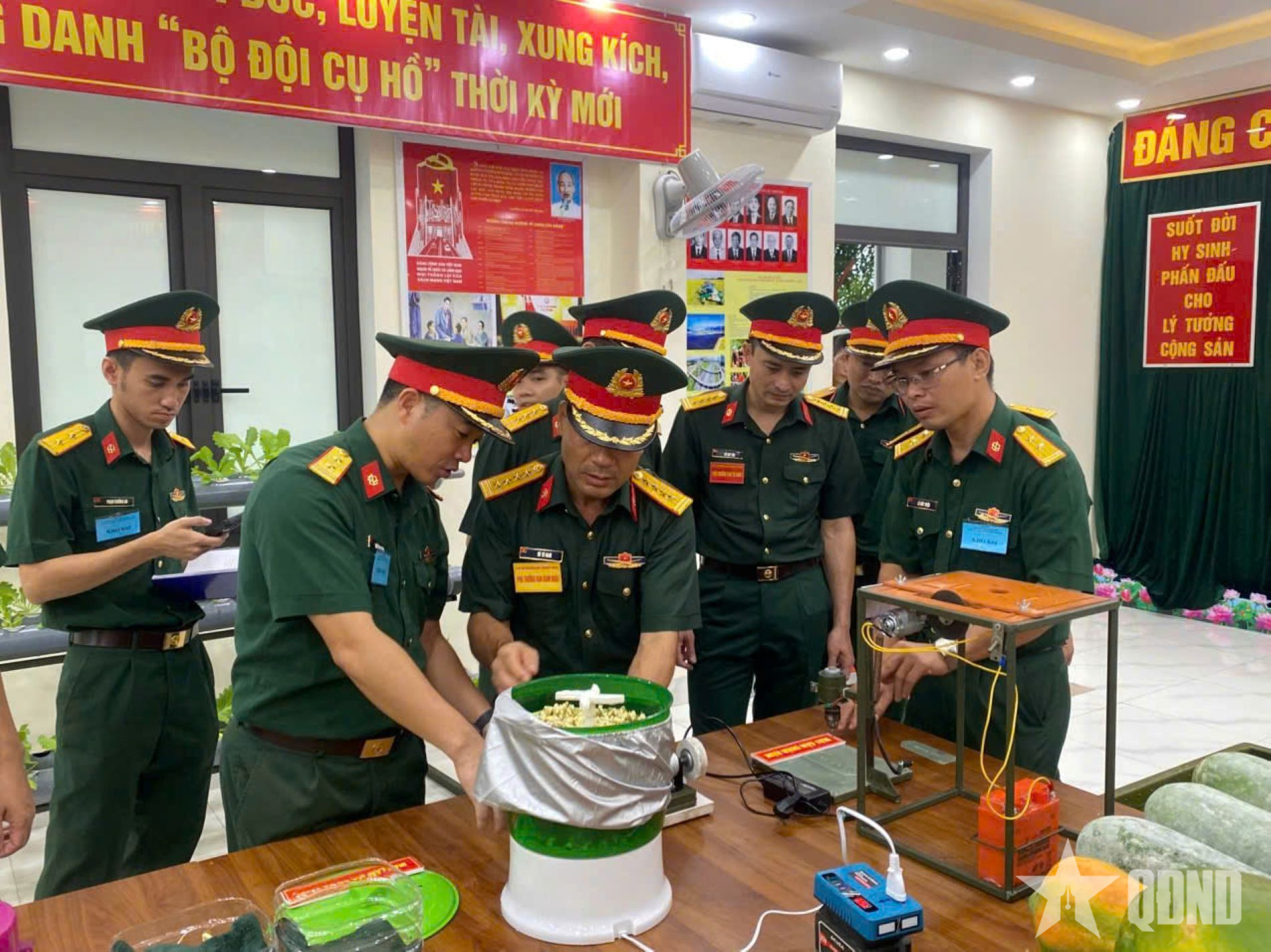 Colonel Do Duy Tan, ຮອງຫົວຫນ້າພະແນກຂົນສົ່ງແລະວິສະວະກໍາຂອງກົມເຄມີແລະທີມງານກວດກາໄດ້ກວດກາການນໍາໃຊ້ເຕັກໂນໂລຊີ QR ໃນການເພີ່ມການຜະລິດຢູ່ສາງ K64. |