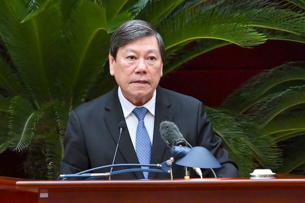 ສະຫາຍ Tran Cam Tu, ກຳມະການ ກົມການເມືອງ , ກຳມະການປະຈຳຄະນະເລຂາກ່າວຄຳປາໄສທີ່ກອງປະຊຸມ.