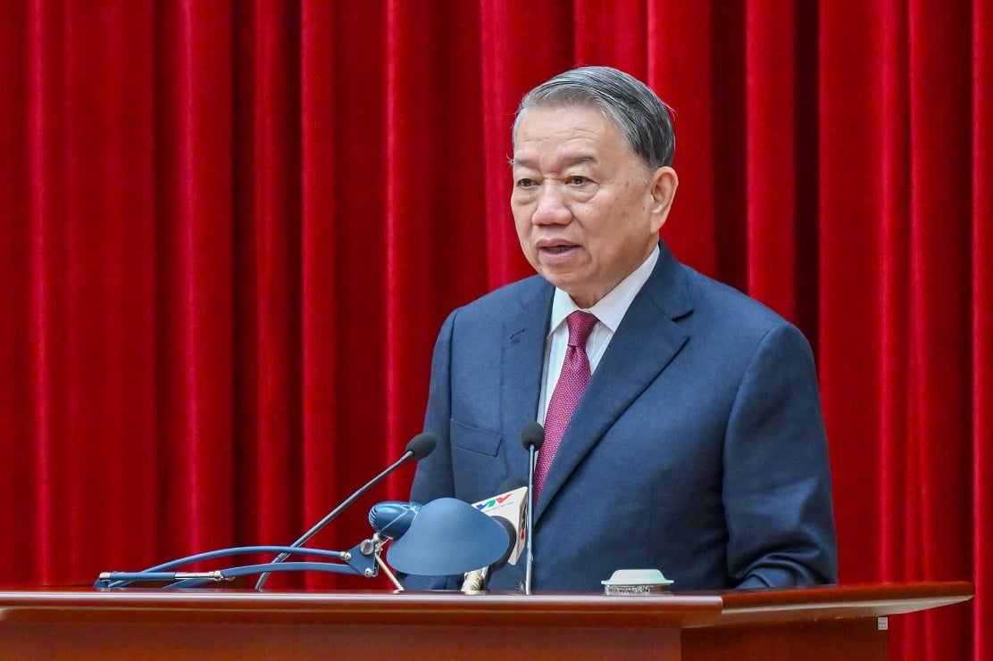 ທ່ານເລຂາທິການໃຫຍ່ To Lam ກ່າວຄຳເຫັນທີ່ກອງປະຊຸມ.