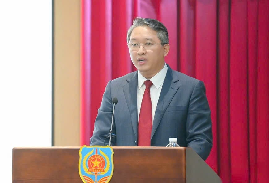 ຮູບພາບ: ທ່ານລັດຖະມົນຕີກະຊວງຍຸຕິທຳ ຫງວຽນຫາຍນິງ ກ່າວຄຳເຫັນ ທີ່ກອງປະຊຸມ .