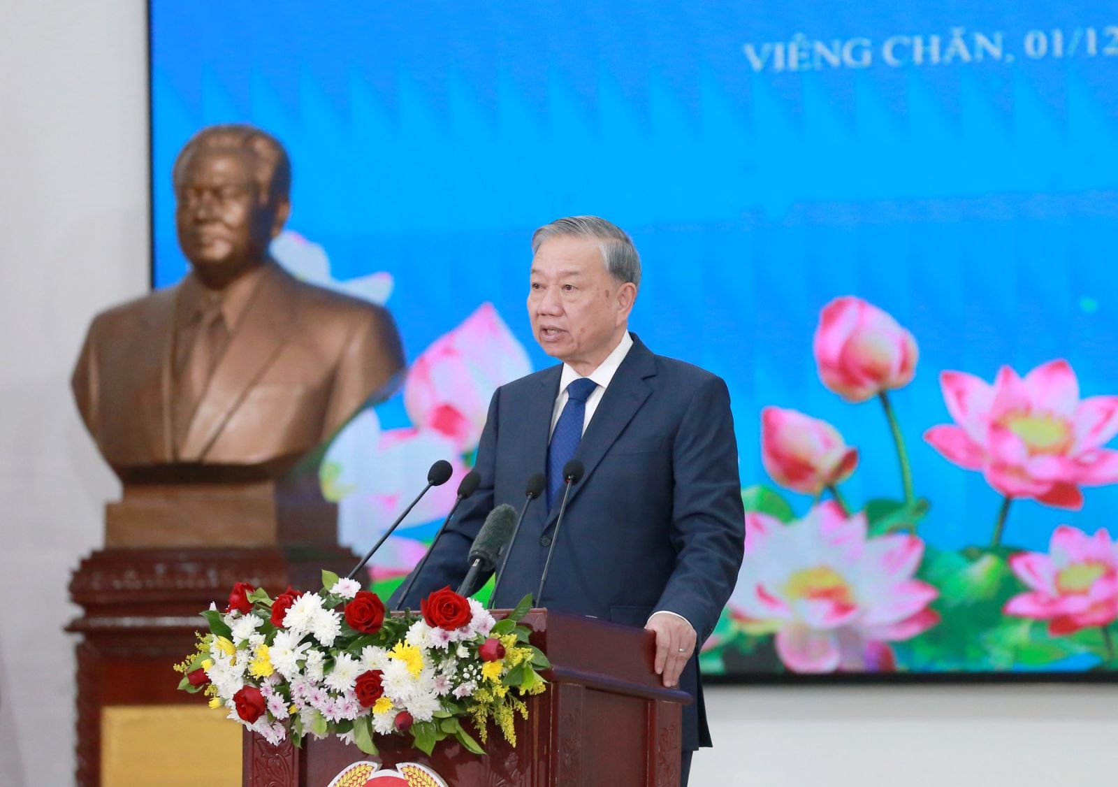 ທ່ານເລຂາທິການໃຫຍ່ເນັ້ນໜັກວ່າ: ຫວຽດນາມ ແລະ ລາວ ແມ່ນສອງປະເທດບ້ານໃກ້ເຮືອນຄຽງທີ່ມີຄວາມມຸ່ງມາດປາຖະໜາອັນດຽວກັນ, ມີຊີວິດການເປັນຢູ່ ແລະ ພັດທະນາອັນດຽວກັນ. ພູມສາດແມ່ນຈຸດເລີ່ມຕົ້ນຂອງສາຍພົວພັນທາງທໍາມະຊາດ, ສະຖານທີ່ທີ່ "ພວກເຮົາແບ່ງປັນໄຟແລະແສງສະຫວ່າງດຽວກັນ", ສະຖານທີ່ທີ່ພວກເຮົາໄດ້ຍິນສຽງໄກ່ຂັນດຽວກັນ, ຖ້ວຍເຂົ້າ, ແລະເມັດພືດຂອງເກືອ. ເປັນເວລາຫຼາຍສັດຕະວັດແລ້ວ, ປະຊາຊົນຂອງສອງປະເທດໄດ້ຜ່ານຜ່າສິ່ງທ້າທາຍອັນໃຫຍ່ຫຼວງທາງປະຫວັດສາດຮ່ວມກັນ, ປະເຊີນກັບຄວາມໂຫດຮ້າຍຂອງທໍາມະຊາດເພື່ອຄວາມຢູ່ລອດ, ໄດ້ຖືກຮຸກຮານຈາກພວກລ່າເມືອງຂື້ນແລະຈັກກະວານຮ່ວມກັນ, ຖືກແບ່ງແຍກ, ຍັບຍັ້ງ, ຂົ່ມເຫັງຮ່ວມກັນ, ປະເຊີນຫນ້າກັບຄວາມກົດດັນຂອງຄວາມຢູ່ລອດຫຼືສາມັກຄີເພື່ອຊະນະຫຼືຖືກທໍາລາຍຢ່າງຕໍ່ເນື່ອງ. ແລະ ສິ່ງທີ່ພິເສດ ແລະ ເປັນເອກະລັກສະເພາະແມ່ນພັກກອມມູນິດອິນດູຈີນເກີດໃນທ້າຍປີ 1930 ເພື່ອນຳພາການເຄື່ອນໄຫວປະຕິວັດຢູ່ຫວຽດນາມ, ລາວ ແລະ ກຳປູເຈຍ.