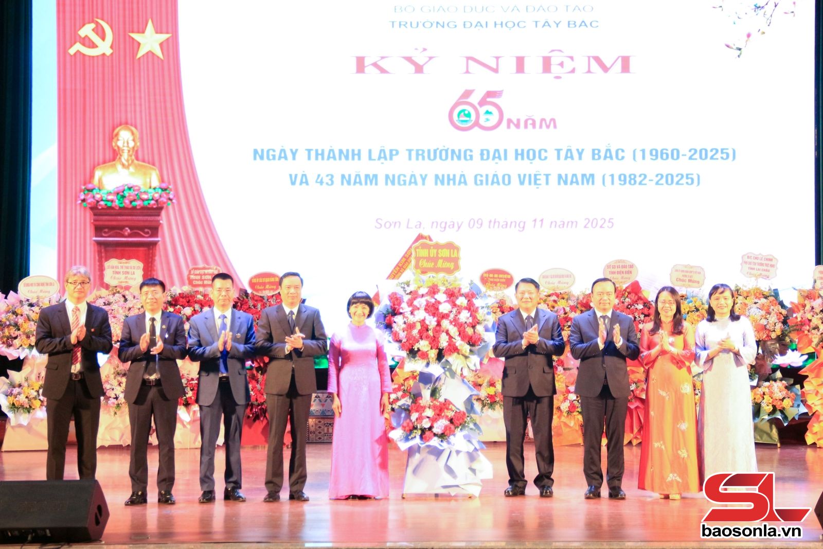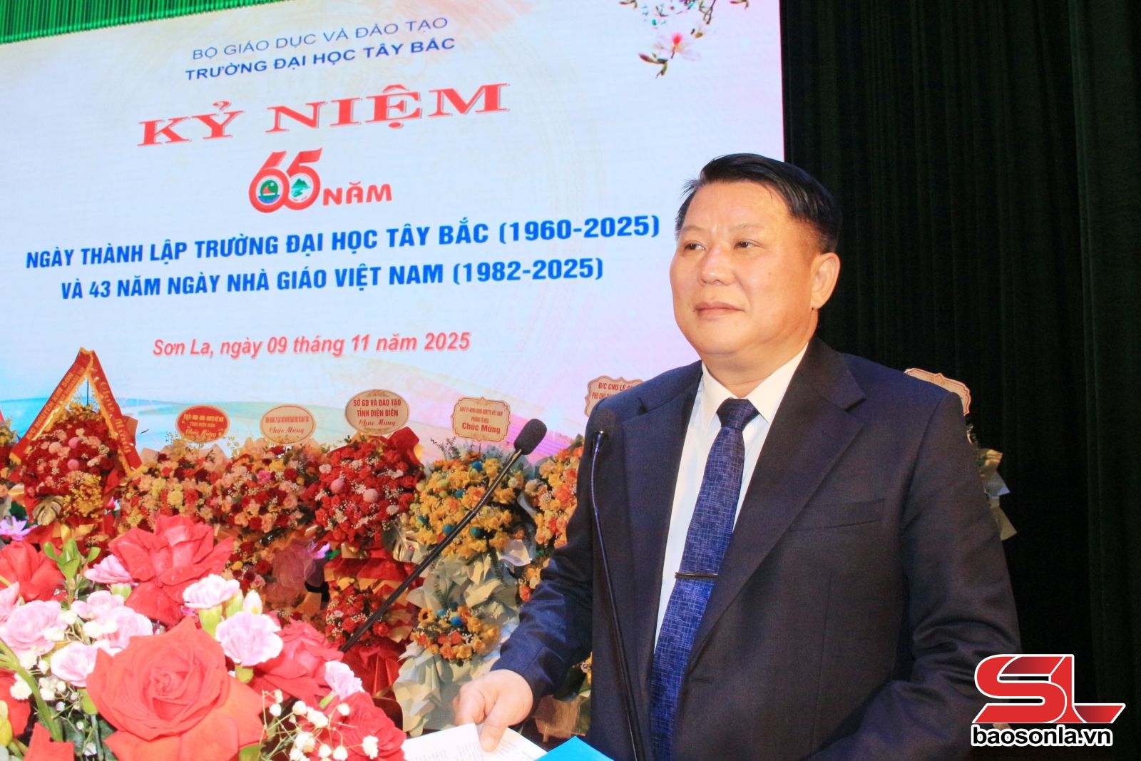 ກ່າວຄຳເຫັນທີ່ພິທີ, ສະຫາຍ Lo Minh Hung ໄດ້ຍ້ອງຍໍ, ຮັບຮູ້ ແລະ ສະແດງຄວາມຂອບອົກຂອບໃຈຢ່າງເລິກເຊິ່ງການປະກອບສ່ວນອັນໃຫຍ່ຫຼວງຂອງບັນດາພະນັກງານ, ອາຈານ, ນັກສຶກສາຂອງມະຫາວິທະຍາໄລ ໄຕບັກ ໃນພາລະກິດສຶກສາ - ບຳລຸງສ້າງ ແລະ ພັດທະນາແຫຼ່ງຊັບພະຍາກອນມະນຸດໃຫ້ແຂວງ ເຊີນລາ ແລະ ພາກຕາເວັນຕົກສຽງເໜືອ. ຕໍ່ກັບເງື່ອນໄຂໃໝ່, ທ່ານ ຮຽກຮ້ອງໃຫ້ໂຮງຮຽນ ສືບຕໍ່ເສີມຂະຫຍາຍຜົນສຳເລັດ ແລະ ໝາກຜົນຂອງຕົນ, ສຸມໃສ່ເຊື່ອມຊຶມໂຄງປະກອບການຈັດຕັ້ງ, ກໍ່ສ້າງ ແລະ ພັດທະນາໂຮງຮຽນຕາມທິດເປັນມະຫາວິທະຍາໄລພາກພື້ນທີ່ມີຫຼາຍວິໄນ, ເປັນເອກະລາດ, ເຊື່ອມໂຍງເຂົ້າກັບສາກົນ ແລະ ຍືນຍົງ. ພັດທະນາກຸ່ມຝຶກອົບຮົມທີ່ສຳຄັນ, ຕິດພັນກັບການຄົ້ນຄວ້າ-ຖ່າຍທອດເຕັກໂນໂລຊີ ແລະ ຄວາມໄດ້ປຽບຂອງພາກພື້ນ, ສຸມໃສ່ການຝຶກອົບຮົມຄູ. ຊຸກຍູ້ການຫັນເປັນດີຈີຕອນຮອບດ້ານໃນການບໍລິຫານມະຫາວິທະຍາໄລ, ການຝຶກອົບຮົມ ແລະ ການຄົ້ນຄວ້າວິທະຍາສາດ; ພັດທະນາຄະນະອາຈານ ແລະ ນັກວິທະຍາສາດທີ່ມີຄຸນນະພາບສູງ... ເພື່ອກໍ່ສ້າງມະຫາວິທະຍາໄລ ໄຕບັກ ໃຫ້ນັບມື້ນັບພັດທະນາ, ສົມຄວນເປັນມະຫາວິທະຍາໄລພາກຕາເວັນຕົກສຽງເໜືອ.