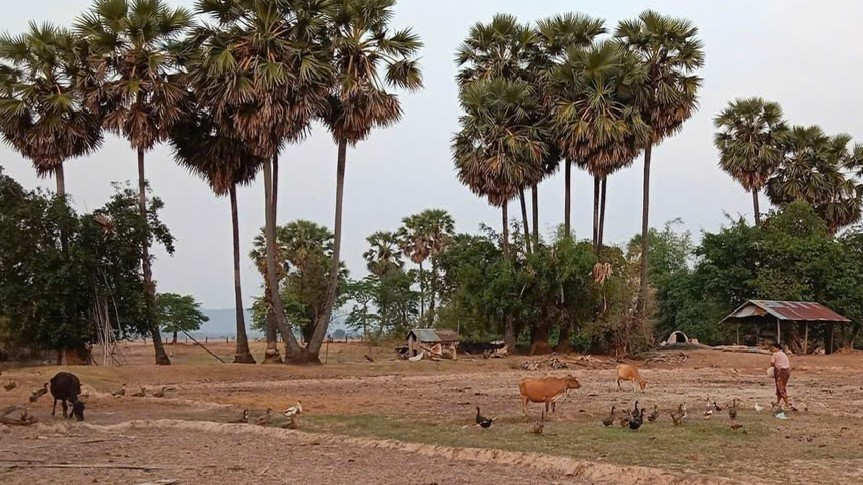 | ແຖວຕົ້ນປາມໃຫຍ່ໂຕກວ້າງຂວາງທົ່ວໝູ່ບ້ານ, ຕິດພັນກັບຊີວິດການເປັນຢູ່ທີ່ສະຫງົບສຸກຂອງປະຊາຊົນ. |