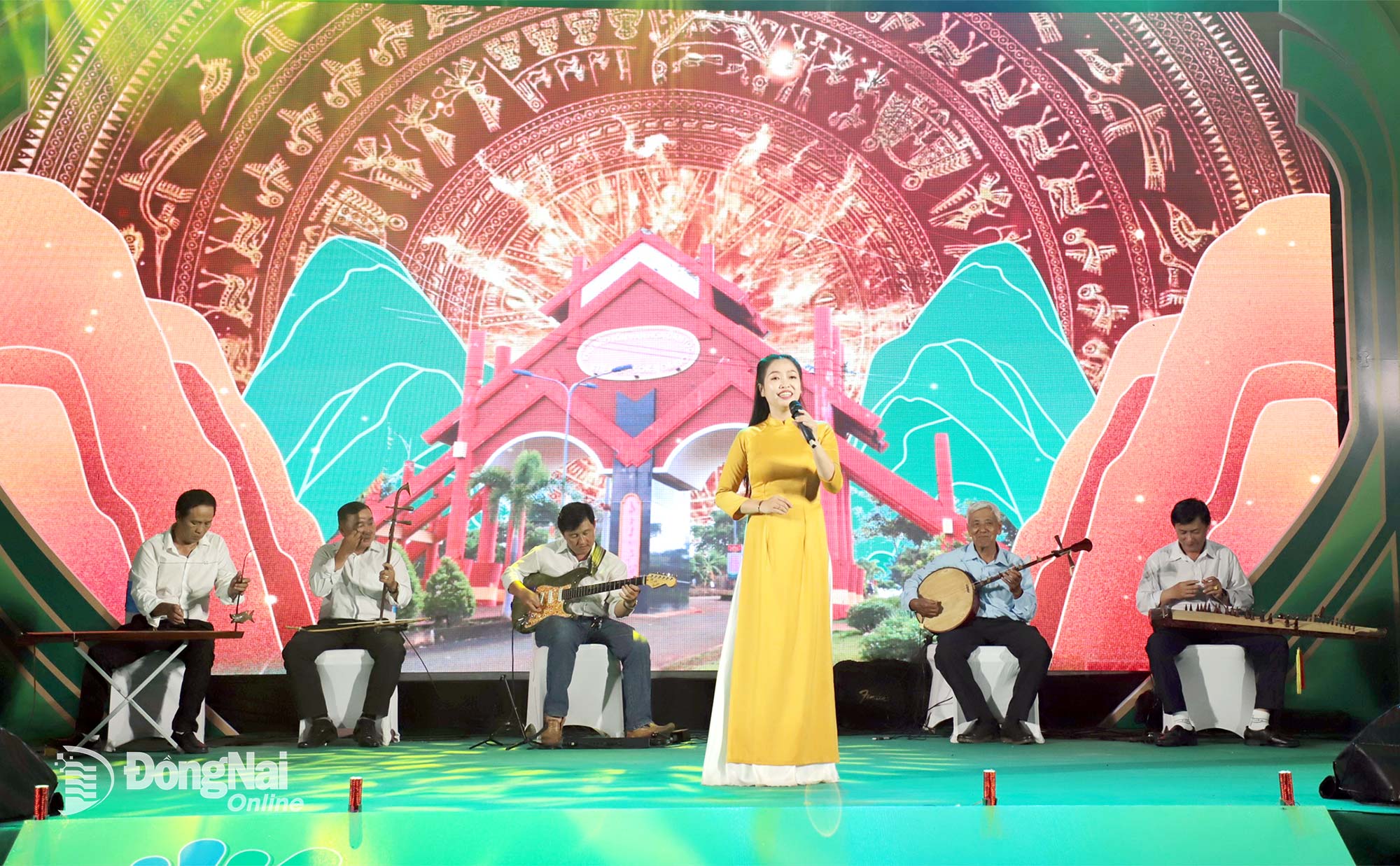 | ນັກສິລະປິນຈາກສູນວັດທະນະທຳ-ໂຮງຮູບເງົາ ດົ່ງນາຍ ໄດ້ສະແດງບົດເພງພື້ນເມືອງ “ສຽງແຄນຢູ່ໝູ່ບ້ານ ບົມໂບ” ເພື່ອຮັບໃຊ້ປະຊາຊົນໃນແຂວງ. ຮູບພາບ: My Ny |
