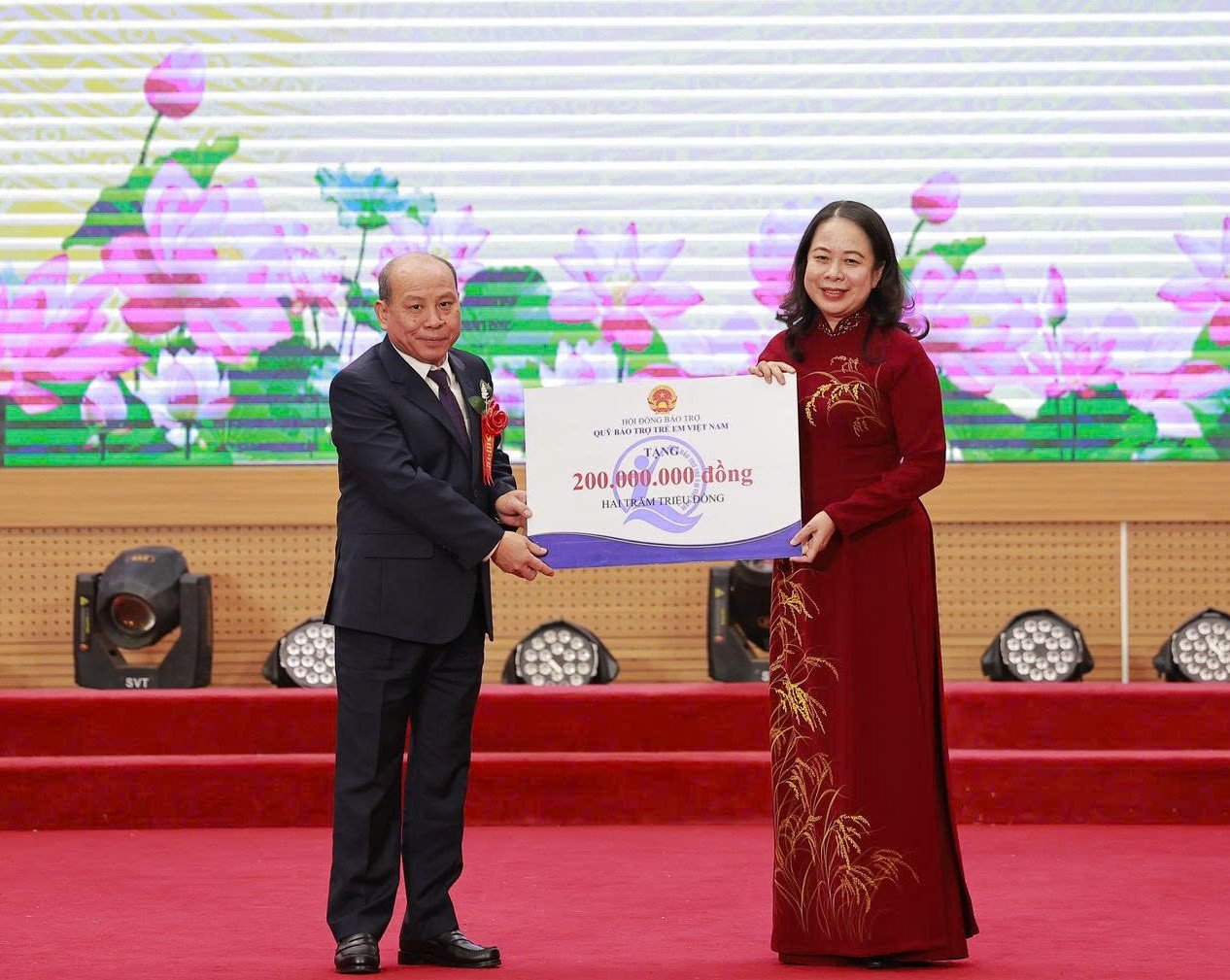 ທ່ານນາງຮອງປະທານປະເທດ ມອບເງິນ 200 ລ້ານດົ່ງໃຫ້ແກ່ເດັກນ້ອຍດ້ອຍໂອກາດຢູ່ແຂວງ ຟູທໍ້. ພາບ: VPCTN