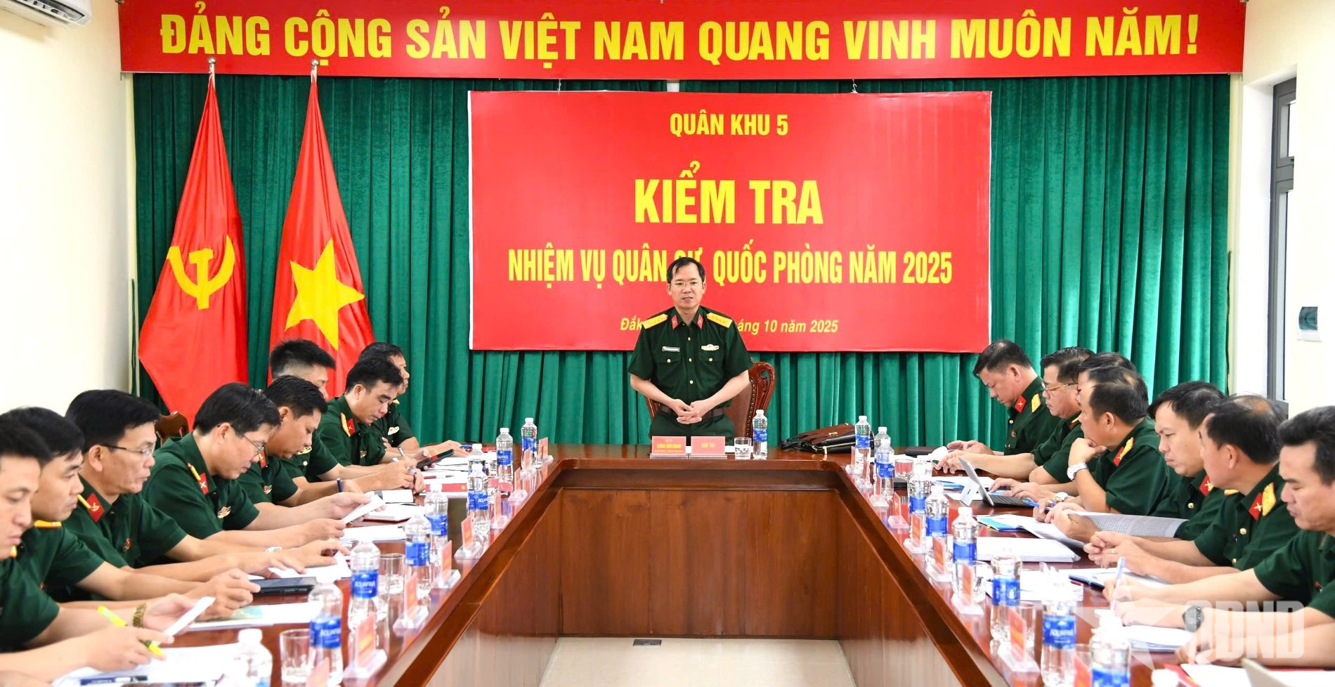 ທ່ານພັນເອກ ເລືອງດິງຈຸງ, ເລຂາຄະນະພັກ, ກໍາມະການການເມືອງ, ທະຫານເຂດ 5 ໄດ້ສະຫຼຸບວຽກງານກວດກາຢູ່ກອງ ພົນ 737. |