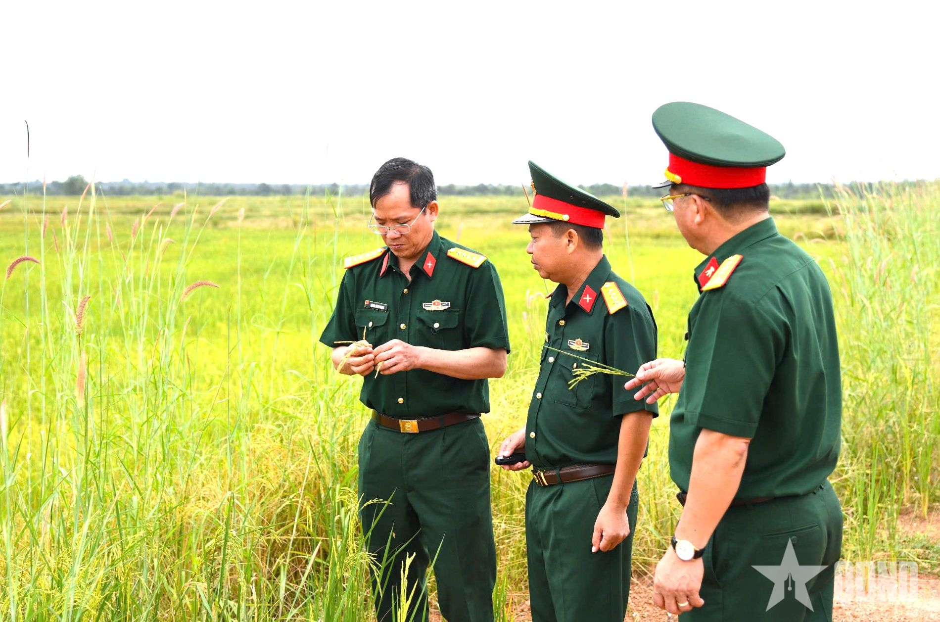 ທ່ານພັນເອກ ເລືອງດິງຈຸງ, ເລຂາຄະນະພັກ, ກໍາມະການການເມືອງ, ທະຫານເຂດ 5 ໄດ້ລົງກວດກາຮູບແບບການປູກເຂົ້າ. |