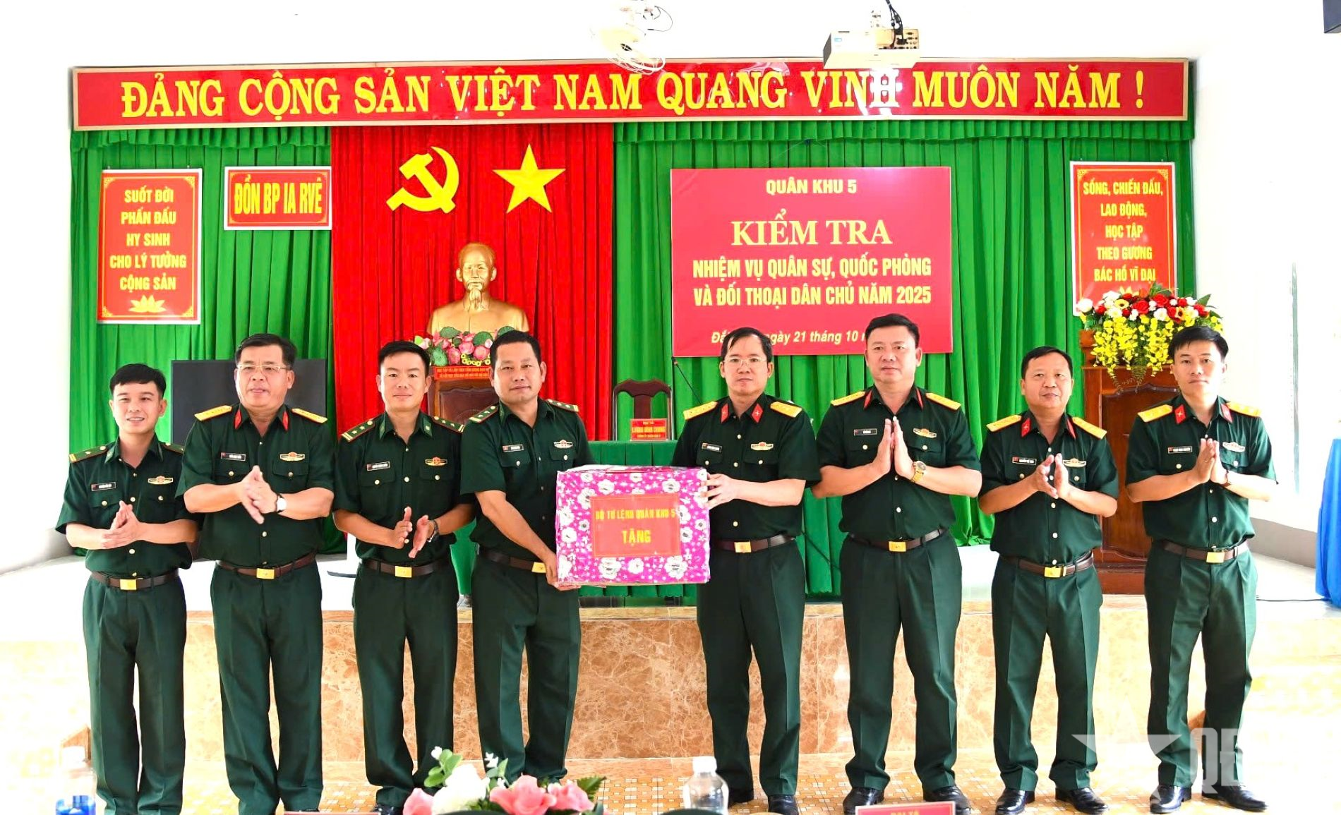 ທ່ານພັນເອກ ເລືອງດິງຈຸງ, ເລຂາຄະນະພັກ, ກໍາມະການການເມືອງທະຫານເຂດ, ພ້ອມດ້ວຍຄະນະ ໄດ້ໄປຢ້ຽມຢາມ ແລະ ມອບຂອງຂວັນໃຫ້ພະນັກງານ, ນັກຮົບຢູ່ດ່ານຊາຍແດນ 2 ແຂວງ Ea H’Leo ແລະ Ia R’Vê. |
