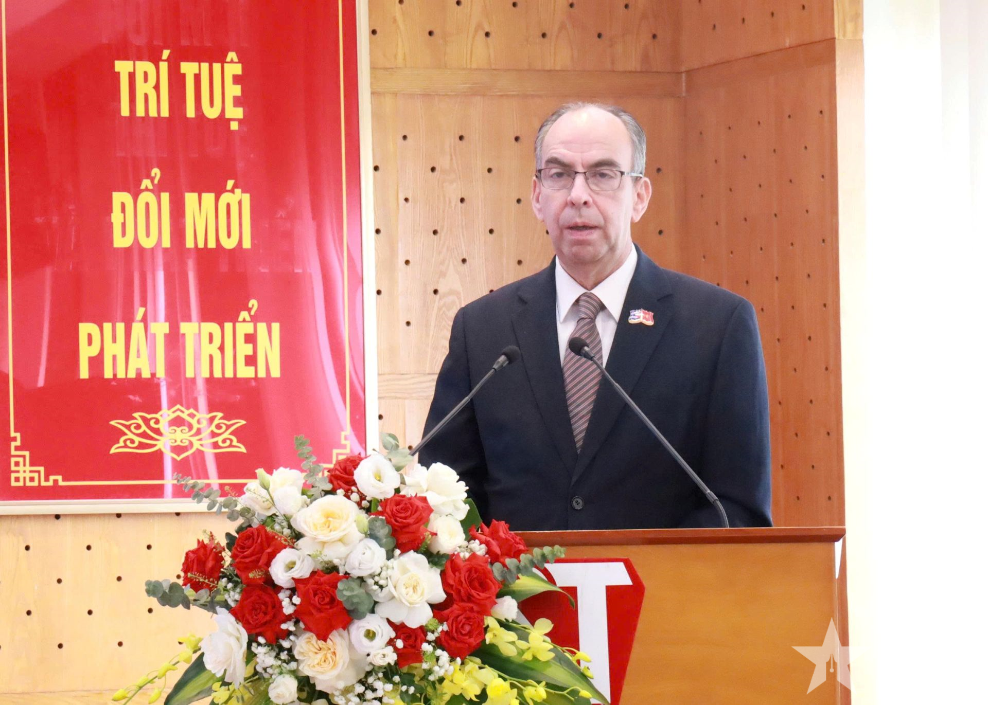 ທ່ານເອກອັກຄະລັດຖະທູດໄດ້ສົ່ງຄວາມຊົມເຊີຍເຖິງສຳນັກພິມຈຳໜ່າຍການເມືອງແຫ່ງຊາດແຫ່ງຄວາມຈິງທີ່ໄດ້ວາງສະແດງປຶ້ມໃນໂອກາດສະເຫຼີມສະຫຼອງສຳຄັນ; ພ້ອມກັນນັ້ນ, ທ່ານກໍ່ໄດ້ສະແດງຄວາມຂອບອົກຂອບໃຈຢ່າງເລິກເຊິ່ງຕໍ່ສຳນັກພິມຈຳໜ່າຍທີ່ໄດ້ປະກອບສ່ວນຢ່າງບໍ່ຢຸດຢັ້ງ ແລະ ສຳຄັນໃນຫຼາຍປີຜ່ານມາ ໂດຍຜ່ານການພິມຈຳໜ່າຍປະຫວັດສາດ, ປະເທດຊາດ ແລະ ປະຊາຊົນ ກູບາ ແລະ ແປ ແລະ ເຜີຍແຜ່ບັນດາຜົນງານຂອງຫວຽດນາມ ເປັນພາສາແອສປາໂຍນ ເພື່ອແນະນຳໃຫ້ຜູ້ອ່ານ ກູບາ.
