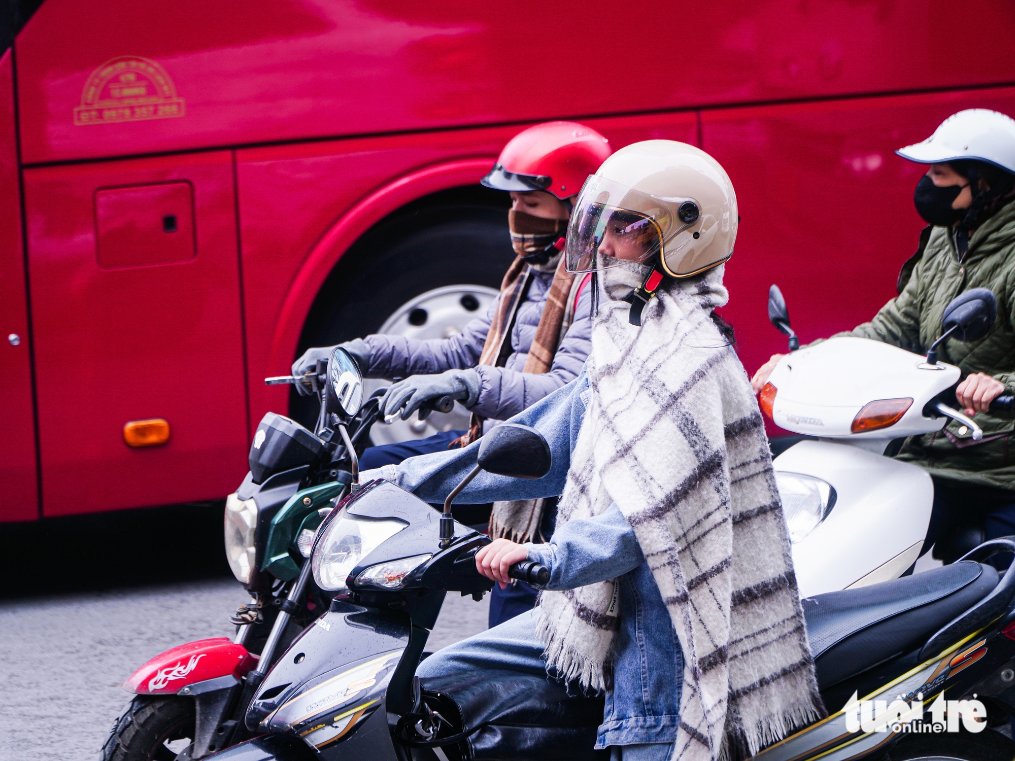 ຊາວຮ່າໂນ້ຍ ນຸ່ງເສື້ອຜ້າທີ່ອົບອຸ່ນ, ປົກຫົວ, ດັງໃນວັນທີ່ອຸນຫະພູມຮ່າໂນ້ຍຫຼຸດລົງຢ່າງແຮງ - ພາບ: PHAM TUAN