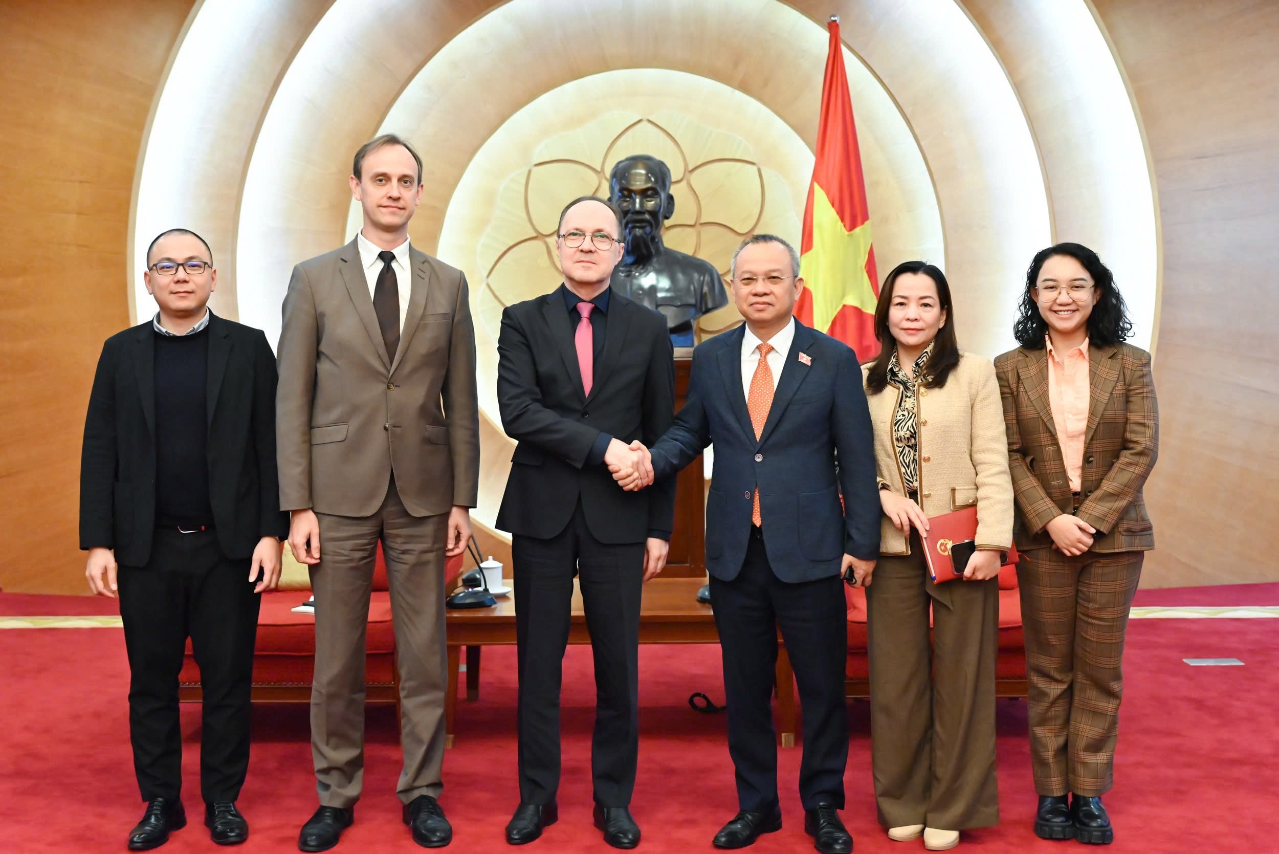 ກ່ຽວກັບການຮ່ວມມືລັດຖະສະພາ, ທ່ານຮອງປະທານ ສະພາແຫ່ງຊາດ ຫງວຽນແມ້ງທ້ຽນ ຢືນຢັນວ່າ: ສະພາແຫ່ງຊາດ ຫວຽດນາມ ຍາມໃດກໍ່ຖືການຮ່ວມມືລັດຖະສະພາແມ່ນໜຶ່ງໃນບັນດາເສົາຄ້ຳສຳຄັນໃນການພົວພັນຫວຽດນາມ - ລັດເຊຍ ໂດຍລວມ. ການລົງນາມໃນສັນຍາຮ່ວມມືລະຫວ່າງສະພາແຫ່ງຊາດຫວຽດນາມ ແລະ ສະພາສະຫະພັນລັດເຊຍ (ເດືອນກັນຍາ 2024), ພ້ອມກັບສັນຍາວ່າດ້ວຍການສ້າງຕັ້ງຄະນະກຳມະການຮ່ວມມືລະຫວ່າງສະພາແຫ່ງຊາດ ຫວຽດນາມ ແລະ ລັດ Duma ລັດເຊຍ (2018), ແມ່ນຂີດໝາຍສຳຄັນສະແດງໃຫ້ເຫັນຄວາມເລິກເຊິ່ງຂອງການຮ່ວມມືລັດຖະສະພາສອງປະເທດ. ທ່ານຮອງປະທານປະເທດ ເນັ້ນໜັກວ່າ ຫວຽດນາມ ໄດ້ຕີລາຄາສູງບົດບາດຂອງຄະນະກຳມະການຮ່ວມມືລະຫວ່າງລັດຖະສະພາ - ແມ່ນຮູບແບບການຮ່ວມມືຂັ້ນສູງຄັ້ງທຳອິດລະຫວ່າງສະພາແຫ່ງຊາດ ຫວຽດນາມ ກັບລັດຖະສະພາຕ່າງປະເທດ. ການຈັດຕັ້ງຂອງຄະນະກໍາມະສົບຜົນສໍາເລັດຂອງສາມກອງປະຊຸມແມ່ນເປັນພິຍານເຖິງປະສິດທິຜົນຢ່າງຫຼວງຫຼາຍຂອງກົນໄກນີ້.