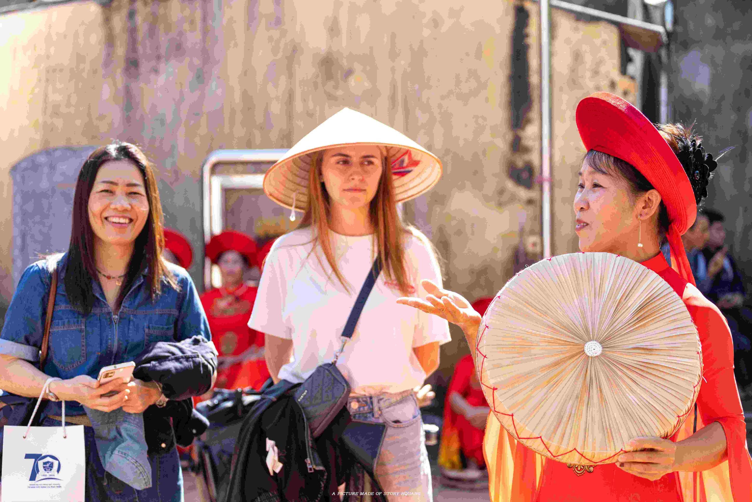 ນັກທ່ອງທ່ຽວທີ່ມາຢ້ຽມຢາມ ໄຕເລີ ບໍ່ພຽງແຕ່ໄດ້ຮຽນຮູ້ກ່ຽວກັບຫັດຖະກຳເຮັດໝວກພື້ນເມືອງ ແລະ ຊື້ຂອງທີ່ລະນຶກເທົ່ານັ້ນ, ຫາກຍັງໄດ້ຊົມອາກາດສົດໃສ, ທິວທັດເຂດຊົນນະບົດ ແລະ ຄວາມເປັນມິດຂອງປະຊາຊົນ. ພາບ: ຫງວຽນຮົ່ງກວາງ