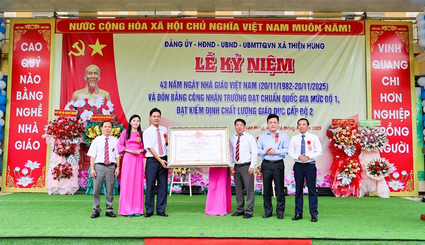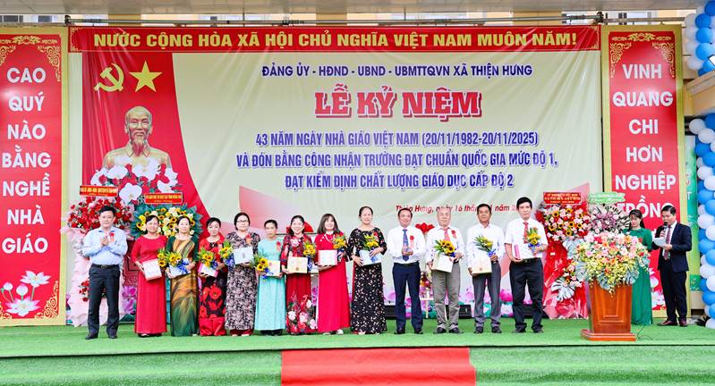ທີ່ພິທີ, ບັນດາຜູ້ແທນ, ຄູ-ອາຈານ ໄດ້ທົບທວນຄືນມູນເຊື້ອ 43 ປີແຫ່ງວັນຄູຫວຽດນາມ ວັນທີ 20 ພະຈິກ, ການປະກອບສ່ວນຂອງຄູ-ອາຈານໃນວຽກງານສຶກສາອົບຮົມປະຊາຊົນ. ປະຈຸບັນ, ຕາແສງ Thien Hung ມີ 12 ໂຮງຮຽນ. ໃນຊຸມປີມໍ່ໆມານີ້, ວຽກງານ ສຶກສາ ຂອງຕາແສງ ທຽນຮົ່ງ ຍາມໃດກໍ່ເອົາໃຈໃສ່ ແລະ ເອົາໃຈໃສ່; ບັນດາໂຮງຮຽນໄດ້ປະດິດສ້າງວິທີການສອນ, ເພີ່ມທະວີການສຶກສາດ້ານຊີວິດການເປັນຢູ່ ແລະ ຮັກສາເອກະລັກວັດທະນະທຳຂອງຊາດໃຫ້ນັກຮຽນ. ຍ້ອນແນວນັ້ນ, ຄຸນນະພາບການສຶກສາຮອບດ້ານໄດ້ຮັບການປັບປຸງໃຫ້ດີຂຶ້ນ; ອັດຕານັກຮຽນດີ, ດີເລີດ ແລະ ຮຽນຈົບໄດ້ບັນລຸ ແລະ ລື່ນກາຍເປົ້າໝາຍໃນແຕ່ລະປີ.