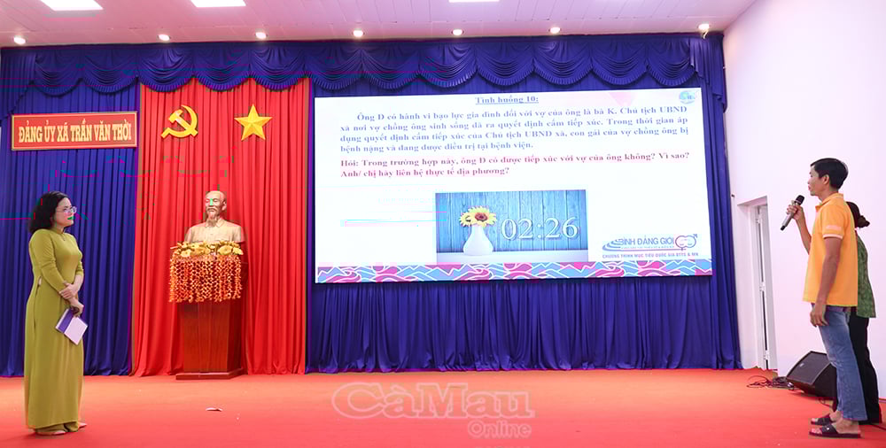 ທີ່ການເຄື່ອນໄຫວສື່ມວນຊົນຢູ່ຕາແສງ Tran Van Thoi, ບັນດາຄະນະໄດ້ສະແດງບັນດາບົດຄວາມທີ່ເລິກເຊິ່ງກ່ຽວກັບຄວາມສະເໝີພາບທາງເພດ ແລະ ສະກັດກັ້ນການໃຊ້ຄວາມຮຸນແຮງໃນຄອບຄົວ.