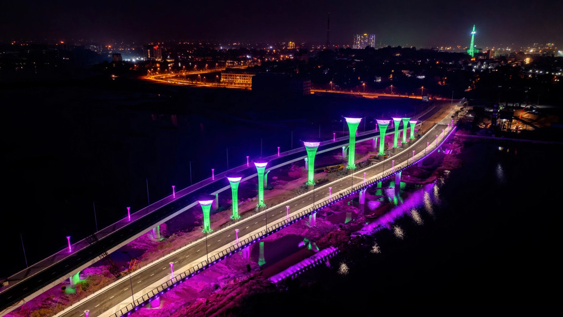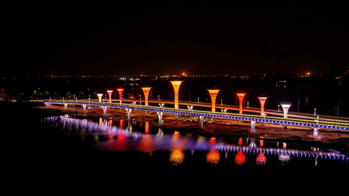 ໂດຍສະເພາະ, ຂົວມີລະບົບແສງສະຫວ່າງທີ່ມີຫຼາຍກວ່າ 15,000 bulbs ທີ່ນໍາເຂົ້າຈາກເອີຣົບ, ຄວບຄຸມທັງຫມົດໂດຍຊອບແວທີ່ມີການປ່ຽນແປງຫຼາຍສີທີ່ແຕກຕ່າງກັນ. ໃນຕອນກາງຄືນ, ພື້ນທີ່ນີ້ກາຍເປັນ sparkling ແລະ magical.