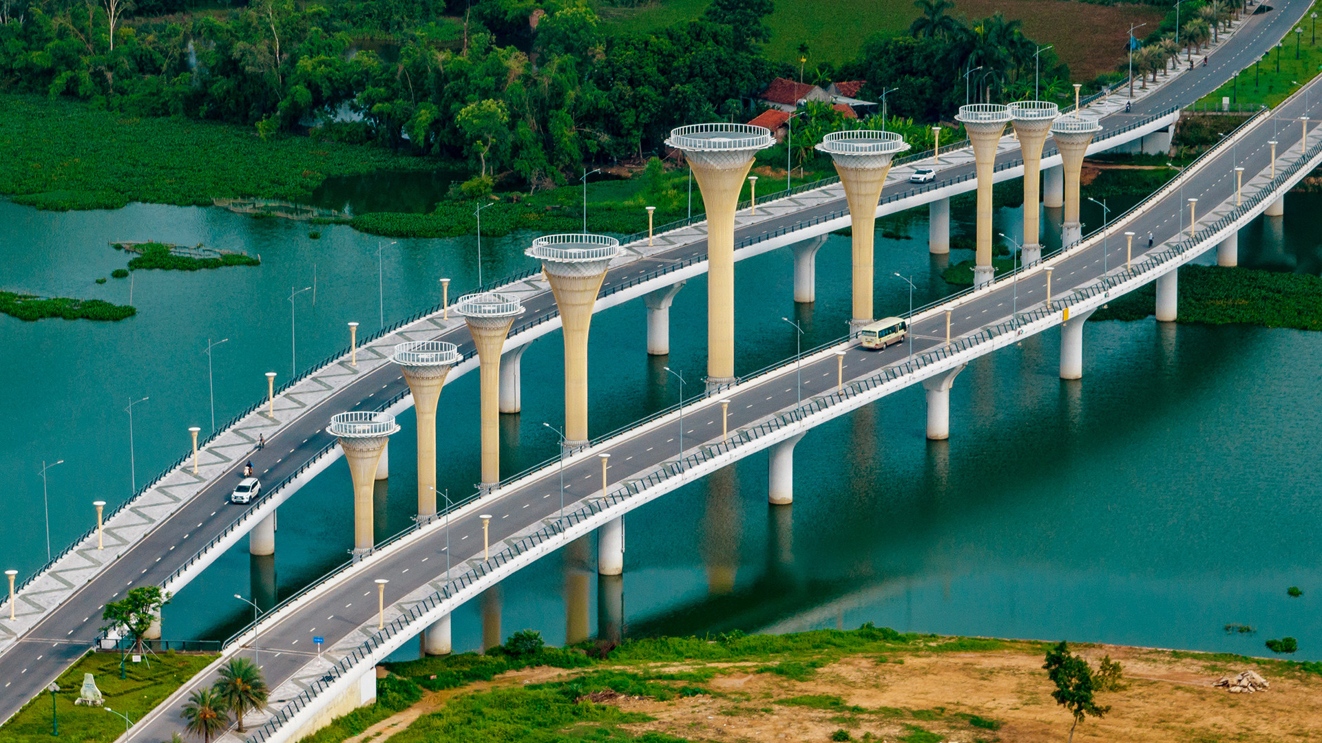ເມື່ອເວົ້າເຖິງວິ້ງອຽນ, ພວກຂ້າພະເຈົ້າບໍ່ສາມາດເວົ້າເຖິງຂົວຂ້າມນ້ຳຂອງມີຄວາມຍາວ 620 ແມັດ ດ້ວຍມູນຄ່າກວ່າ 610 ຕື້ດົ່ງ. ຂົວດັ່ງກ່າວມີ 2 ໜ່ວຍ, ອອກແບບດ້ວຍຫໍຮູບ lotus ຂະໜາດໃຫຍ່ 9 ເສົາ ແລະ ຫໍຮູບດອກກຸຫຼາບນ້ອຍ 13 ໜ່ວຍ ຢູ່ກາງທາງຍ່າງແຕ່ລະດ້ານ. ແນວຄວາມຄິດແມ່ນມາຈາກ "ສວນໂດຍອ່າວ" ຂອງສິງກະໂປ.