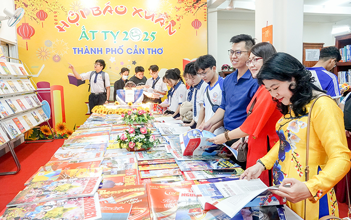 ງານມະໂຫລານໜັງສືພິມລະດູບານໃໝ່ ແລະ ການປະກວດພິມຈຳໜ່າຍລະດູບານໃໝ່ປີ 2025 ຢູ່ນະຄອນ ເກີນ ເທີ. ຮູບພາບ: DUY KHOI