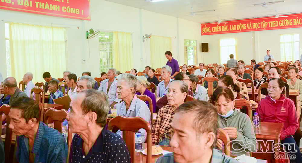 ທ່ານ ຟ້າມແອງຕວນ, ປະທານສະມາຄົມຜູ້ອາຍຸສູງແຂວງ ກ່າເມົາ ໄດ້ມອບຂອງຂວັນທີ່ມີອາຍຸຍືນໃຫ້ຜູ້ເຖົ້າແກ່ຢູ່ຄຸ້ມ Hoa Thanh.