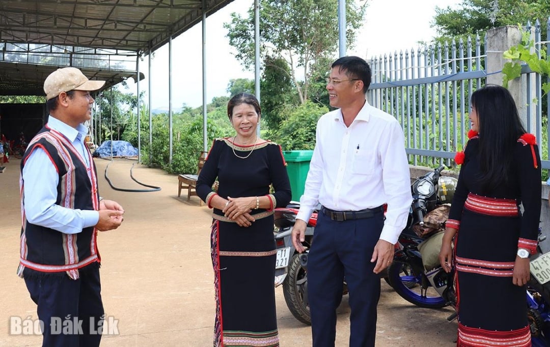 | ທ່ານເລຂາທິການໃຫຍ່, ປະທານສະພາປະຊາຊົນຕາແສງ Ea Ning ທ່ານ Tran Van Que (ທີ່ສອງຈາກຂວາ) ໂຄສະນານະໂຍບາຍໜູນຊ່ວຍຂອງລັດກ່ຽວກັບບັນດາເຜົ່າ. |