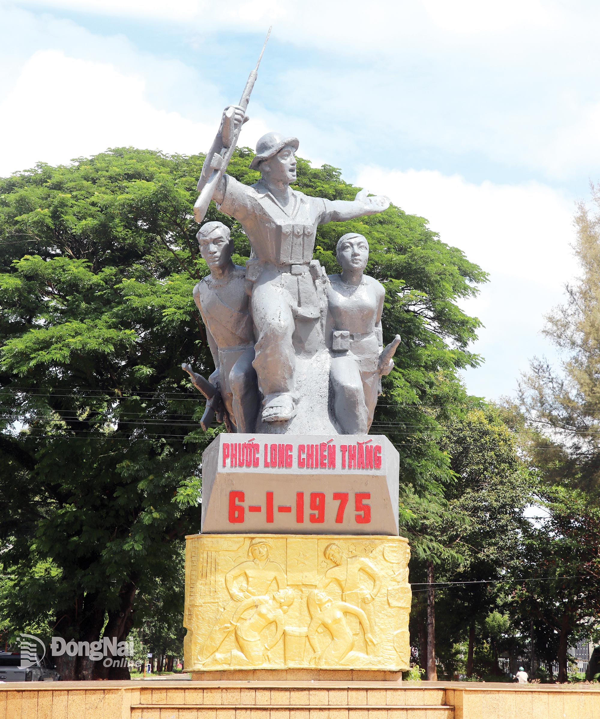 ຕາມນັ້ນແລ້ວ, ອະນຸສາວະລີໄຊຊະນະຝູລອງ ໃນວັນທີ 6/1/1975 ແມ່ນສູງກວ່າ 5 ແມັດ, ແຕ່ຕີນຮູບປັ້ນເຖິງຮູບຕົວລະຄອນ. ພິເສດ, ສ່ວນໃຫຍ່ຂອງອະນຸສາວະລີແມ່ນຮູບປັ້ນທີ່ມີລັກສະນະເຊື່ອມຕໍ່ 3 ຕົວ, ໃນນັ້ນມີຜູ້ຊາຍ 2 ຄົນ, ຍິງ 1 ຄົນ. ນີ້ແມ່ນຮູບພາບຂອງທະຫານປົດປ່ອຍ, ຢືນບ່າໄຫລ່, ມຸ່ງໜ້າໄປໜ້າ, ເບິ່ງຄືສະຫງ່າຜ່າເຜີຍ. ຢູ່ລຸ່ມສັນຍາລັກ 3 ອັນນີ້ ແມ່ນກ້ອນຫີນສູງເກືອບ 1 ແມັດ ດ້ວຍຄຳວ່າ “ໄຊຊະນະ ຝູ໋ລອງ ໃນວັນທີ 6 ມັງກອນ 1975”. ຢູ່ທາງລຸ່ມແມ່ນແທ່ນຫີນຂອງຮູບປັ້ນ, ສູງ 1.68 ແມັດ, ປະດັບປະດາດ້ວຍທອງຄຳ ປະດັບປະດາຮູບການຂອງຫຼາຍຕົວລະຄອນທີ່ເປັນທະຫານ ແລະຍິງສາວຊົນເຜົ່າ, ເປັນສັນຍາລັກແຫ່ງຄວາມສາມັກຄີລະຫວ່າງກອງທັບ ແລະປະຊາຊົນ. ອານຸສາວະລີທັງໝົດຖືກວາງໄວ້ເທິງແທ່ນວາງຮອບ, ປູດ້ວຍດິນຈີ່, ມີເສັ້ນຜ່າສູນກາງປະມານ 5 ແມັດ ແລະ ມີຂັ້ນໄດຂຶ້ນໄປເຖິງຕີນຂອງຮູບປັ້ນ.