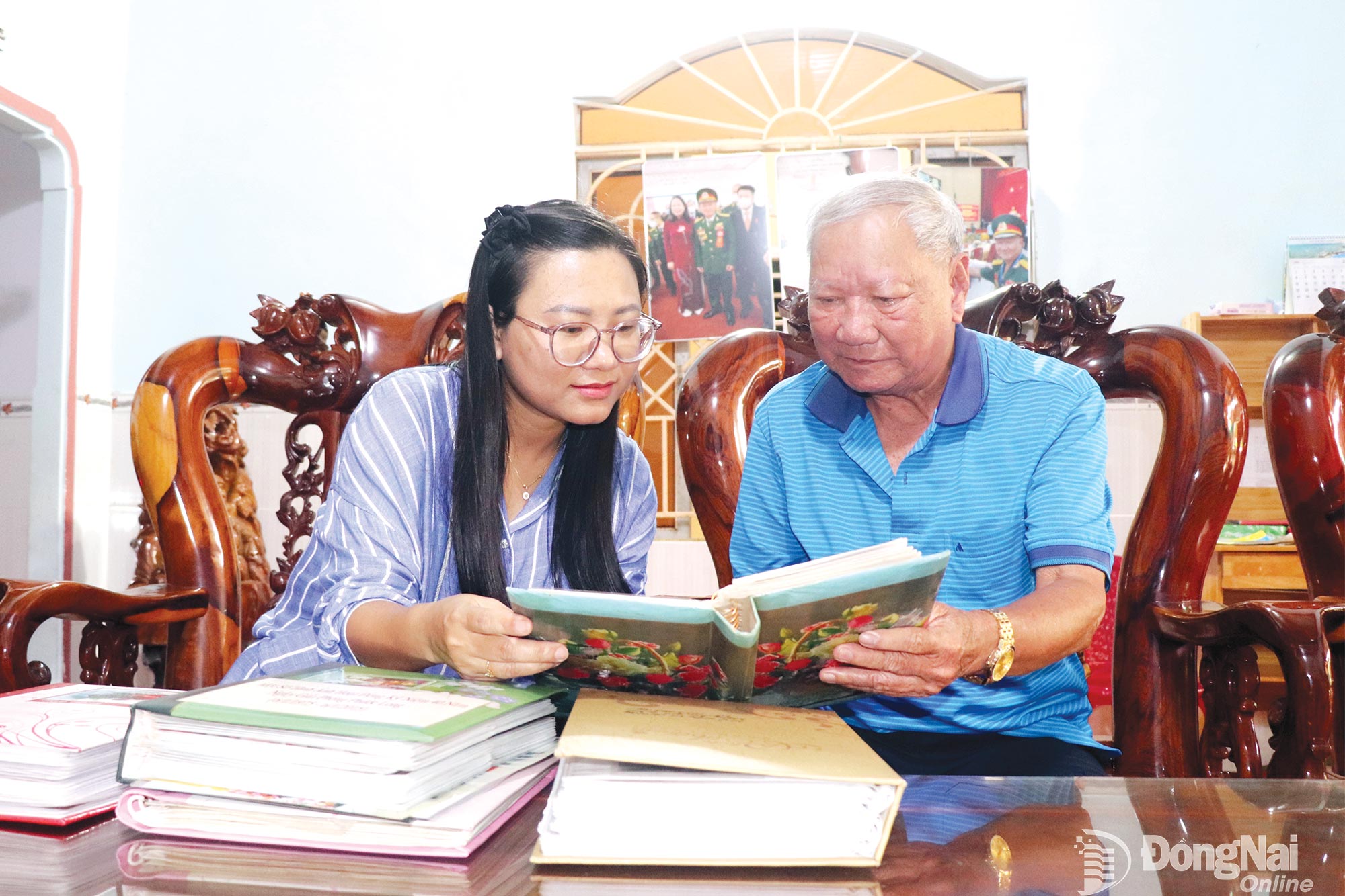 ພາຍຫຼັງການແນະນຳຂອງປະຊາຊົນແລ້ວ, ພວກຂ້າພະເຈົ້າໄດ້ໄປເຮືອນຂອງນັກຮົບເກົ່າ Le Ly Trinh (ດຳລົງຊີວິດຢູ່ຫວອດຝູລອງ). ທ່ານ Trinh ໄດ້ເຂົ້າຮ່ວມບັ້ນຮົບຢູ່ສະໜາມຮົບ Phuoc Long ແຕ່ປີ 1967 ແລະ ຍາມໃດກໍ່ຕິດພັນກັບຜືນແຜ່ນດິນນີ້ມາຮອດປະຈຸບັນ. ດ້ວຍຄວາມຮັກແພງ ຟຸກລອງ, ພ້ອມກັບຄວາມມັກຮັກໃນການຖ່າຍຮູບ ແລະ ຍ້ອນລັກສະນະອາຊີບ (ເມື່ອກ່ອນເຄີຍເປັນຮອງຫົວໜ້າພະແນກຖະແຫຼງຂ່າວວັດທະນະທຳ-ຂ່າວສານເມືອງ ເຟືອກລອງ), ທ່ານ ເຈີ່ນດ້າຍກວາງ ໄດ້ບັນທຶກພາບພົດລົກຫຼາຍຮູບຫຼາຍແຜ່ນ, ໃນນັ້ນມີພາບພົດວັນຄົບຮອບ 10 ປີ ວັນປົດປ່ອຍ ເຟືອກລອງ (6 ມັງກອນ 1971 – 9 ມັງກອນ) ໃນເວລາ 6 ເດືອນ 08. ອະນຸສາວະລີ 6 ມັງກອນ 1975 ສໍາເລັດ.