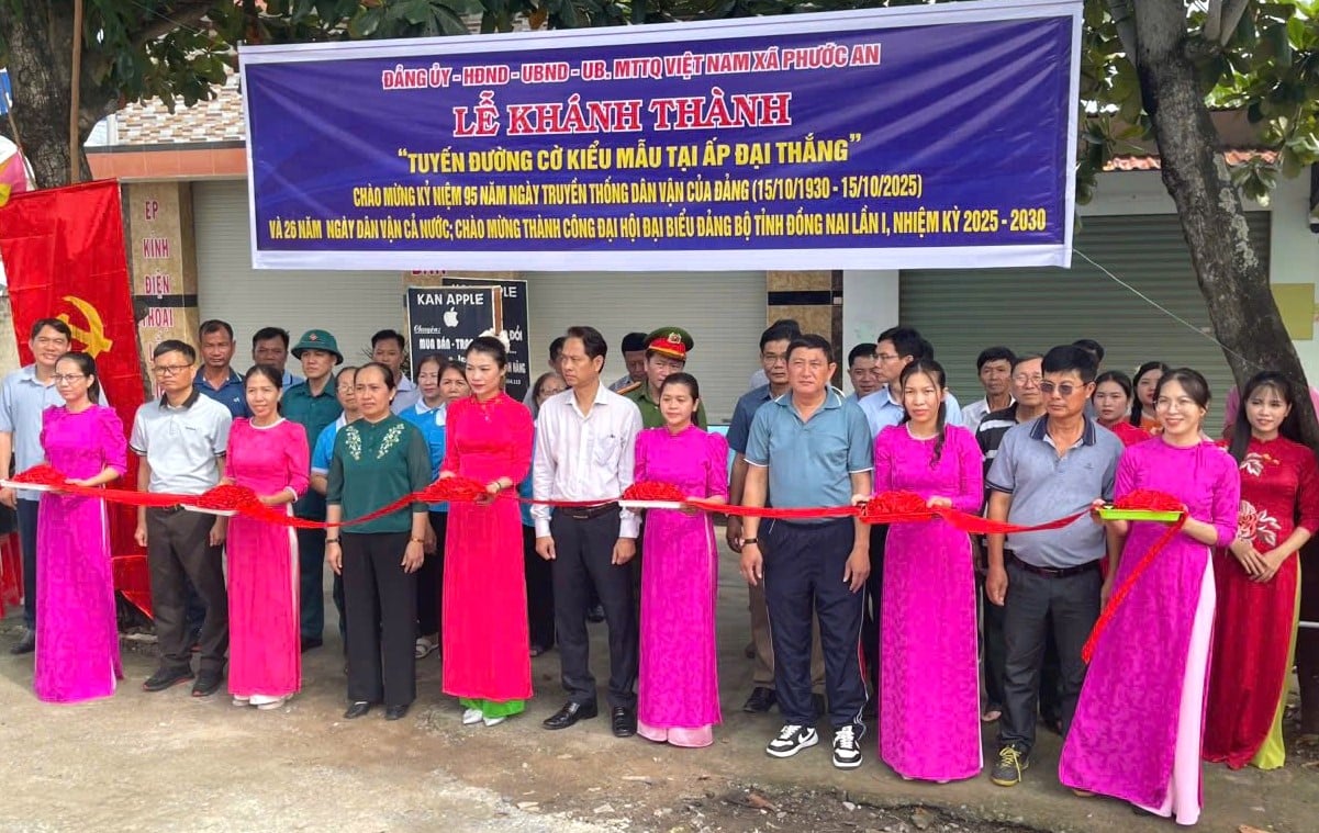 ການນຳຄະນະພັກ - ສະພາປະຊາຊົນ - ຄະນະກຳມະການປະຊາຊົນ - ແນວໂຮມປະເທດຊາດ ຫວຽດນາມ ຕາແສງ ຟຸກອຽນ ໄດ້ຕັດແຖບຜ້າເປີດ “ເສັ້ນທາງທຸງຕົວແບບ” ຢູ່ໝູ່ບ້ານ ດ໋າຍແທ່ງ.