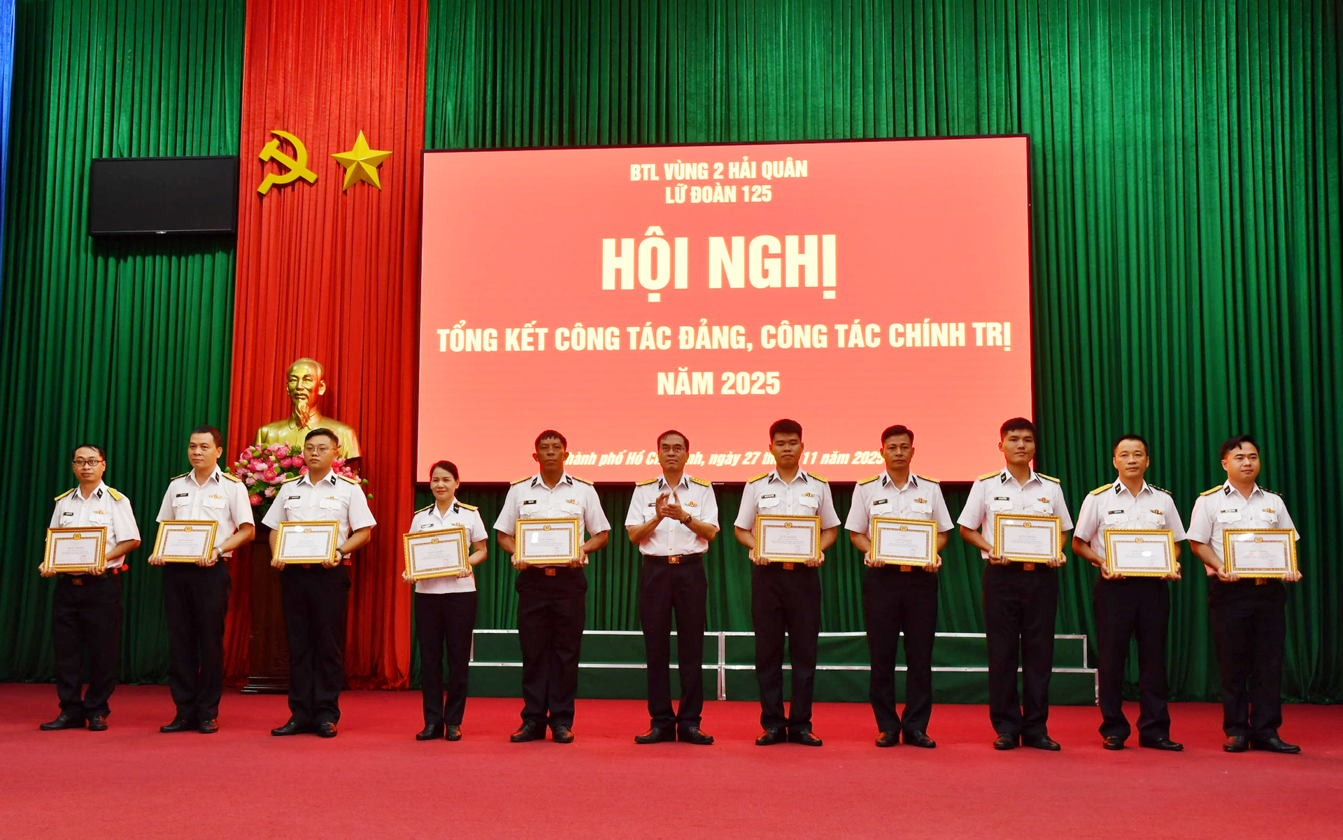 Năm 2025, Đảng ủy, chỉ huy Lữ đoàn 125 đã lãnh đạo, chỉ đạo đơn vị tiến hành toàn diện, hiệu quả hoạt động CTĐ, CTCT, nhất là trong các nhiệm vụ: Trực bảo vệ chủ quyền an ninh trên biển; bảo vệ hoạt động kinh tế biển; huấn luyện, diễn tập; vận tải quân sự, tham gia nhiệm vụ A50, A80; tổ chức Đại hội Đảng bộ Lữ đoàn lần thứ XVII, nhiệm kỳ 2025 - 2030; phục vụ đón, tiễn các đoàn đi thăm, kiểm tra quần đảo Trường Sa, Nhà giàn DK1 và các đảo trên vùng biển Tây Nam; tuyên truyền biển, đảo; hoạt động đối ngoại quốc phòng… Lữ đoàn 125 được Chủ tịch nước tặng Huân chương Bảo vệ Tổ quốc hạng Nhì; Quân chủng Hải quân tặng danh hiệu “Đơn vị Quyết thắng” năm 2025.