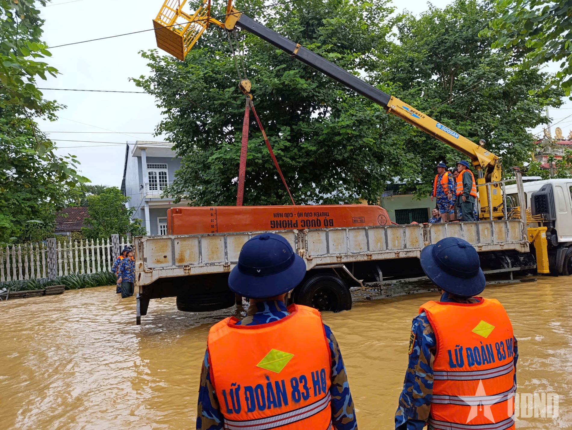 Lữ đoàn Công binh 83 điều động 30 cán bộ, chiến sĩ cùng 5 xe ô tô, 2 xe tải, 1 xe cẩu và 2 xuồng máy cơ động đến thôn Kỳ Bì và thôn Kỳ Lam (xã Điện Bàn Tây, TP Đà Nẵng) đã bị cô lập hoàn toàn do nước lũ 2 ngày qua.