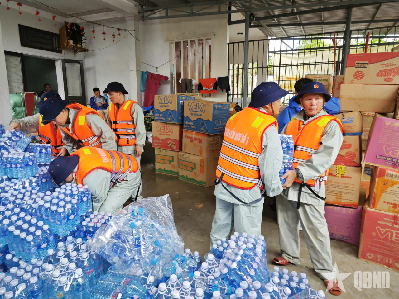 Lữ đoàn Công binh 83 chuẩn bị nhu yếu phẩm hỗ trợ nhân dân vùng lũ. |
